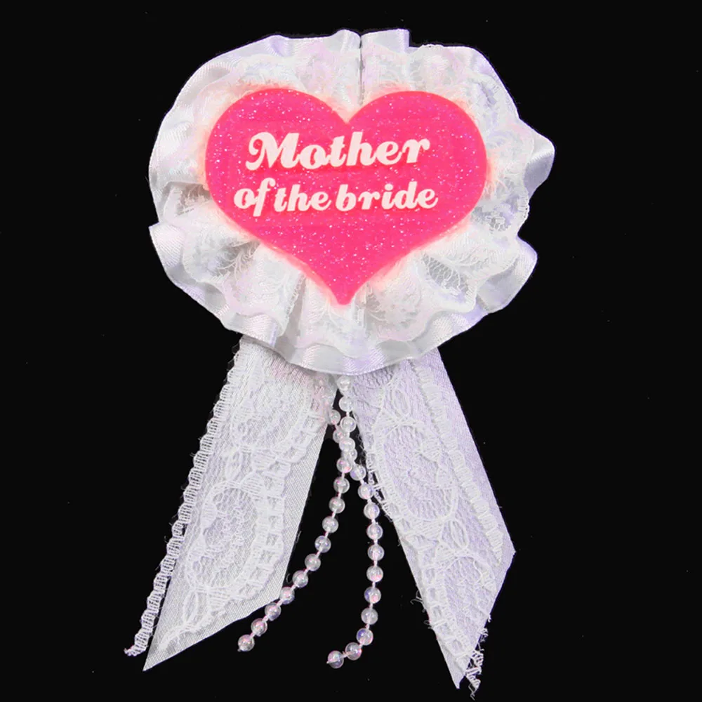 BR19092163 Белое кружево белая лента розовое блестящее сердце мать невесты: