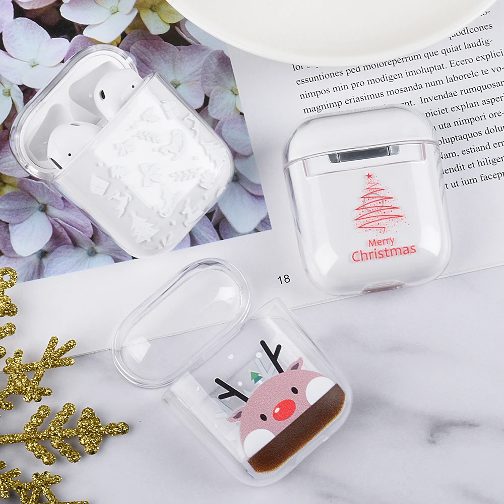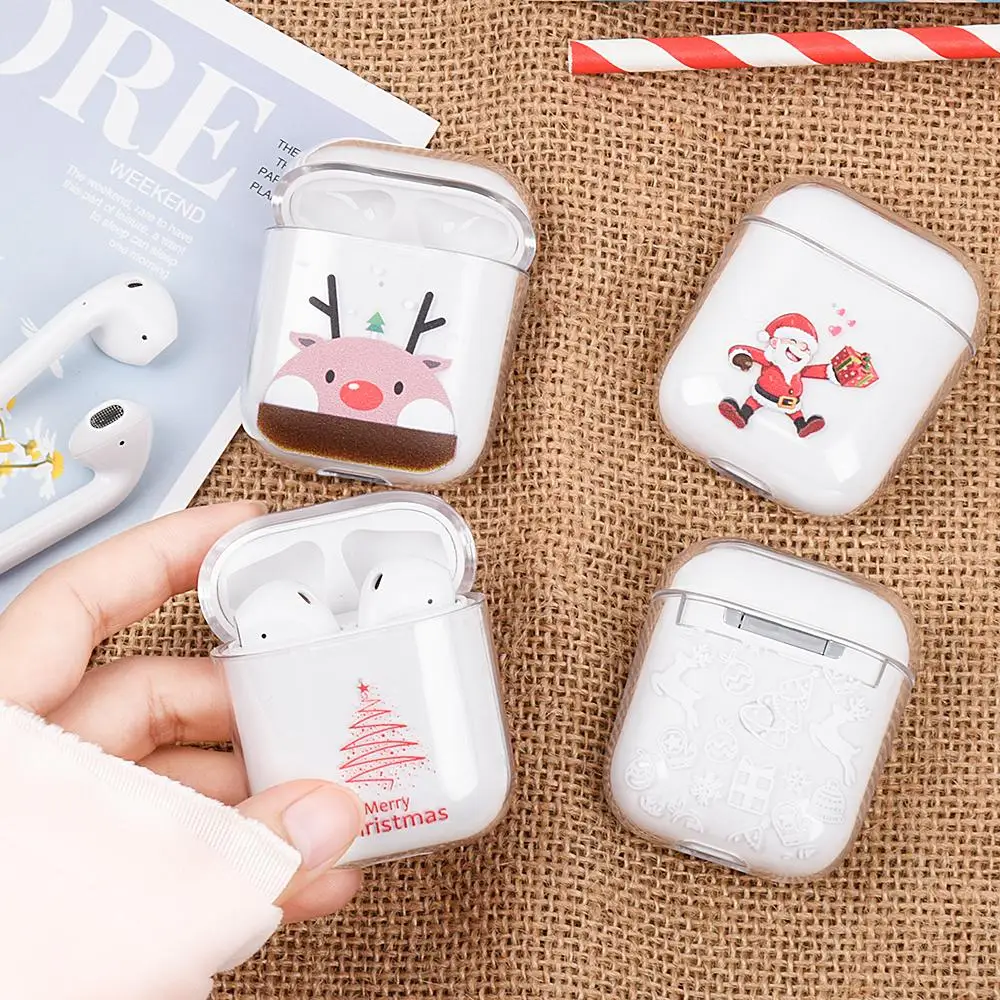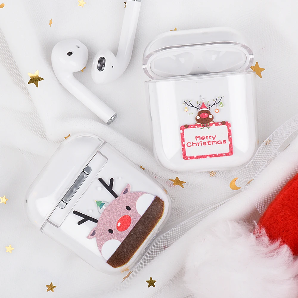 Для Air Pods супер милые Мультяшные рождественские прозрачные Bluetooth беспроводные наушники Чехлы для Apple AirPods 1 2 Жесткий ПК чехол коробка