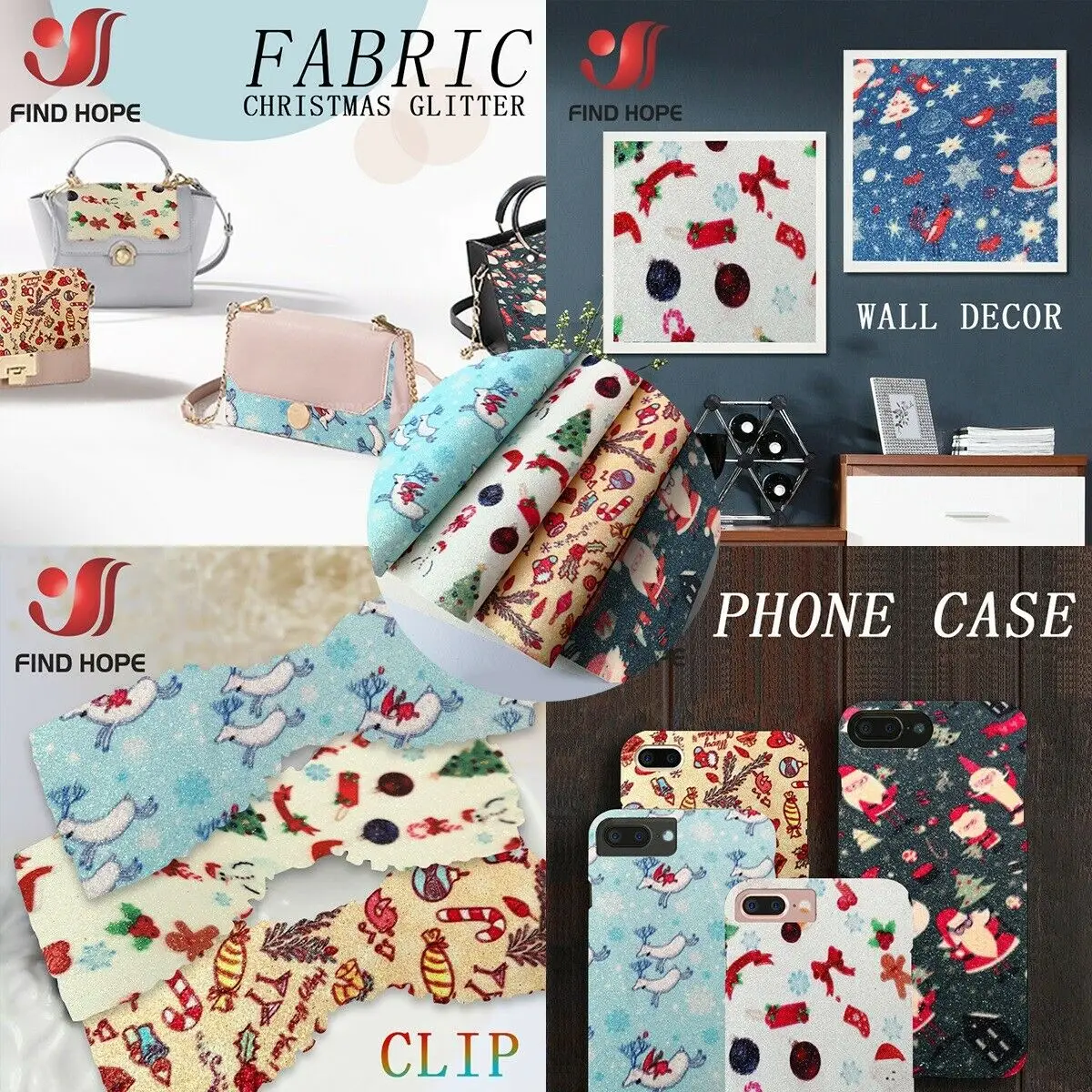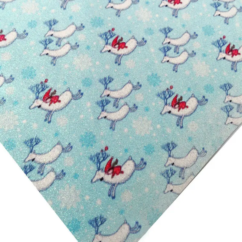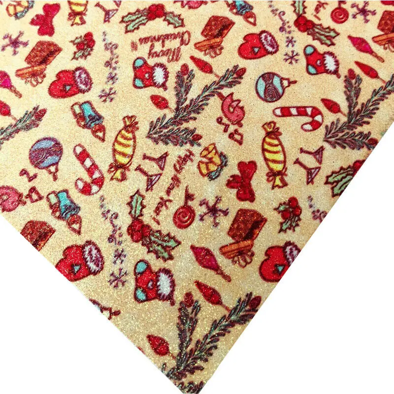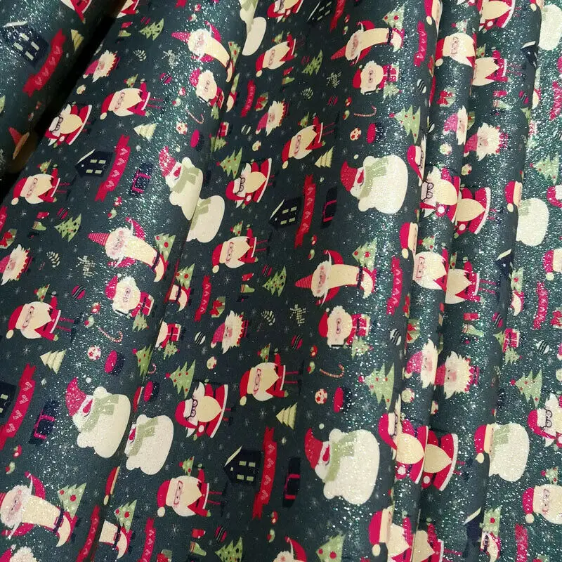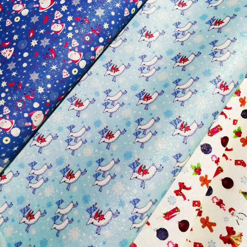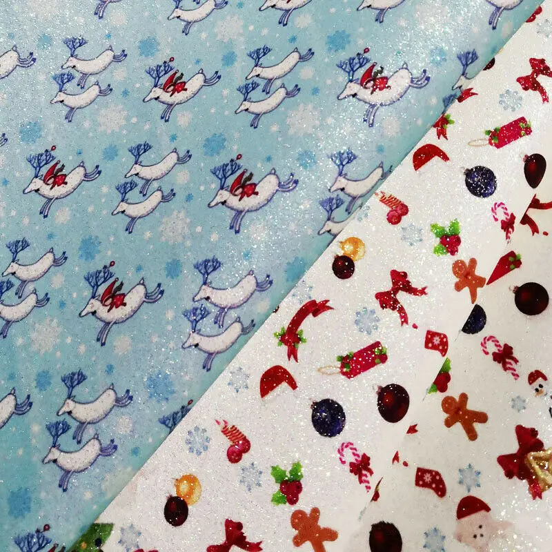 Рождественская серия, тонкая искусственная кожа с блестками с принтом, материал для рукоделия