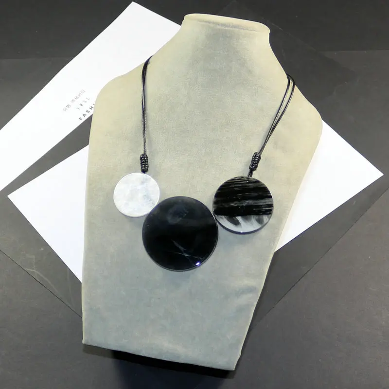 Круглые черные ожерелья с подвеской из акриловой смолы для женщин, модные ювелирные изделия, массивное ожерелье ручной работы, винтажные длинные массивные бусы в стиле бохо