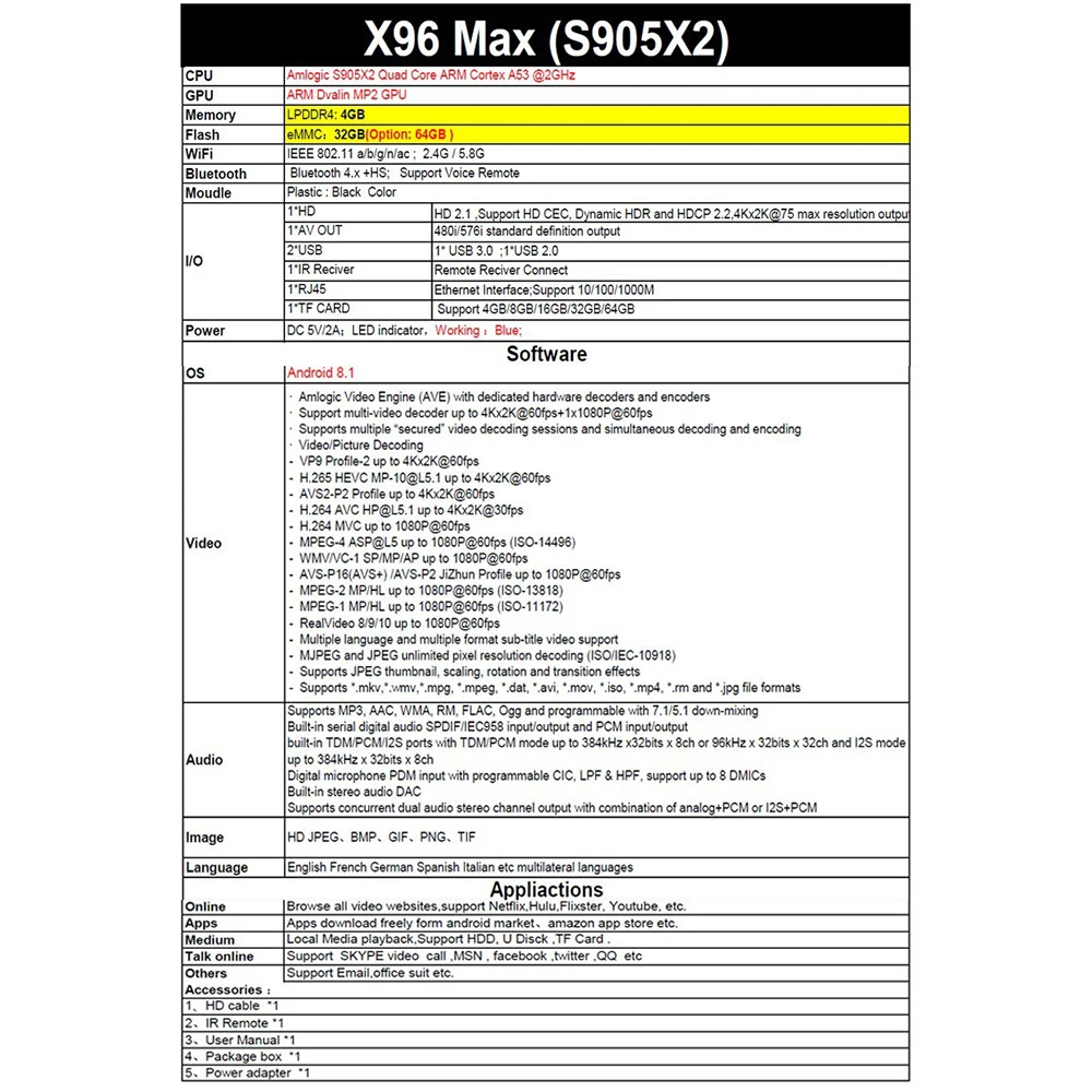 B: 4 Гб + 32 ГБ + 2,4G и 5 ГГц двойной Wifi + BT4.1 + 1000 м