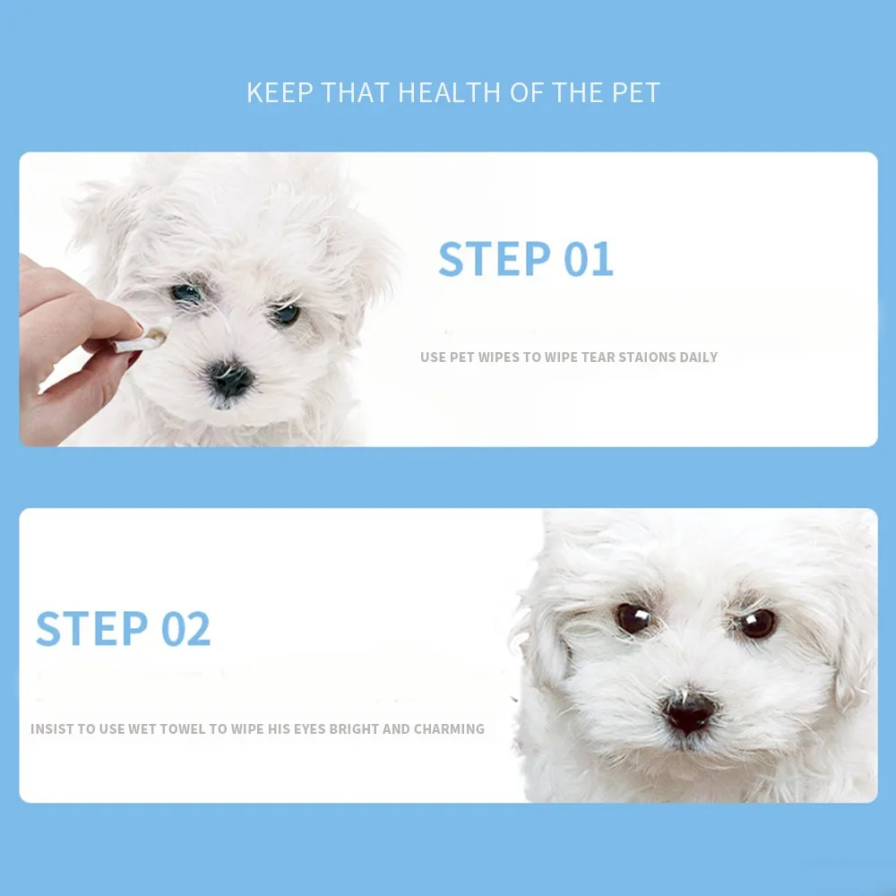 100 шт. Чистящая бумага для домашних животных, полотенца для глаз, влажные салфетки для удаления пятен со слезой, для собак, кошек, нежные, не запутывающие салфетки, принадлежности для ухода