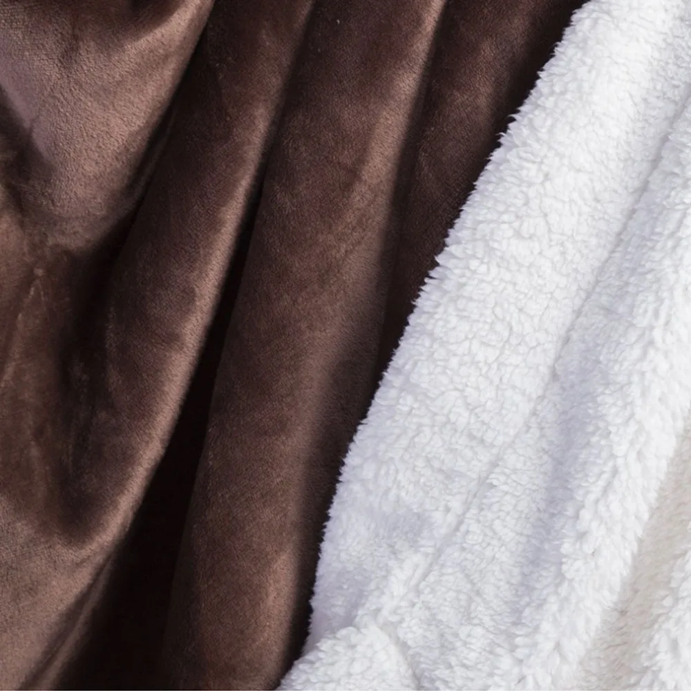 Уникальный дизайн Философия: Двухстороннее супер мягкое одеяло с флисовым лицом и плюшевой шерпой Реверс предлагает Вам различные ощущения мягкости, чтобы улучшить ваш сон с одной стороны гладкой и пушистой Другой-принесет вам максимальную мягкость и тепло с флисовым верхом 220 GSM и передним одеялом 280 GSM Sherpa с декоративной трикотажной отделкой для превосходного Внешний вид.