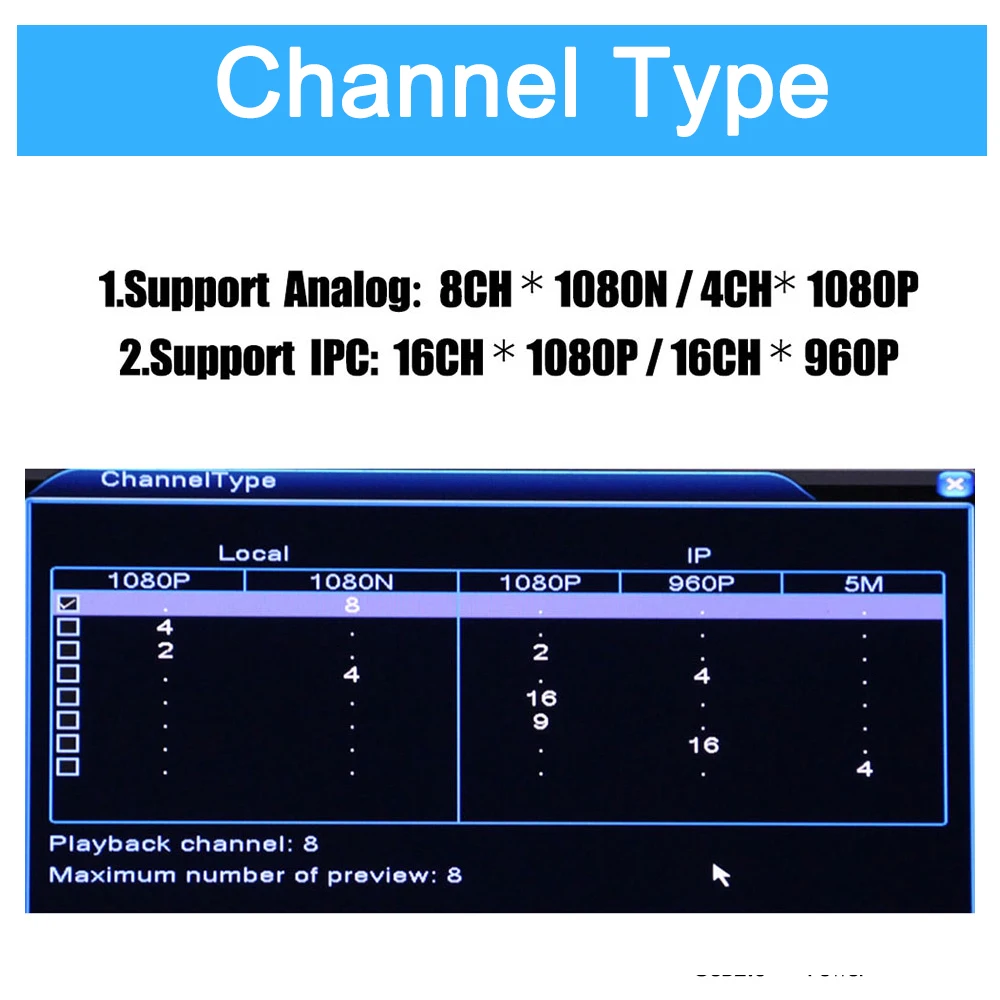 1 * 4CH/8CH AHD DVR HVR