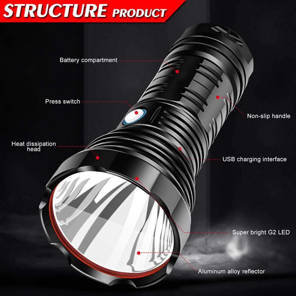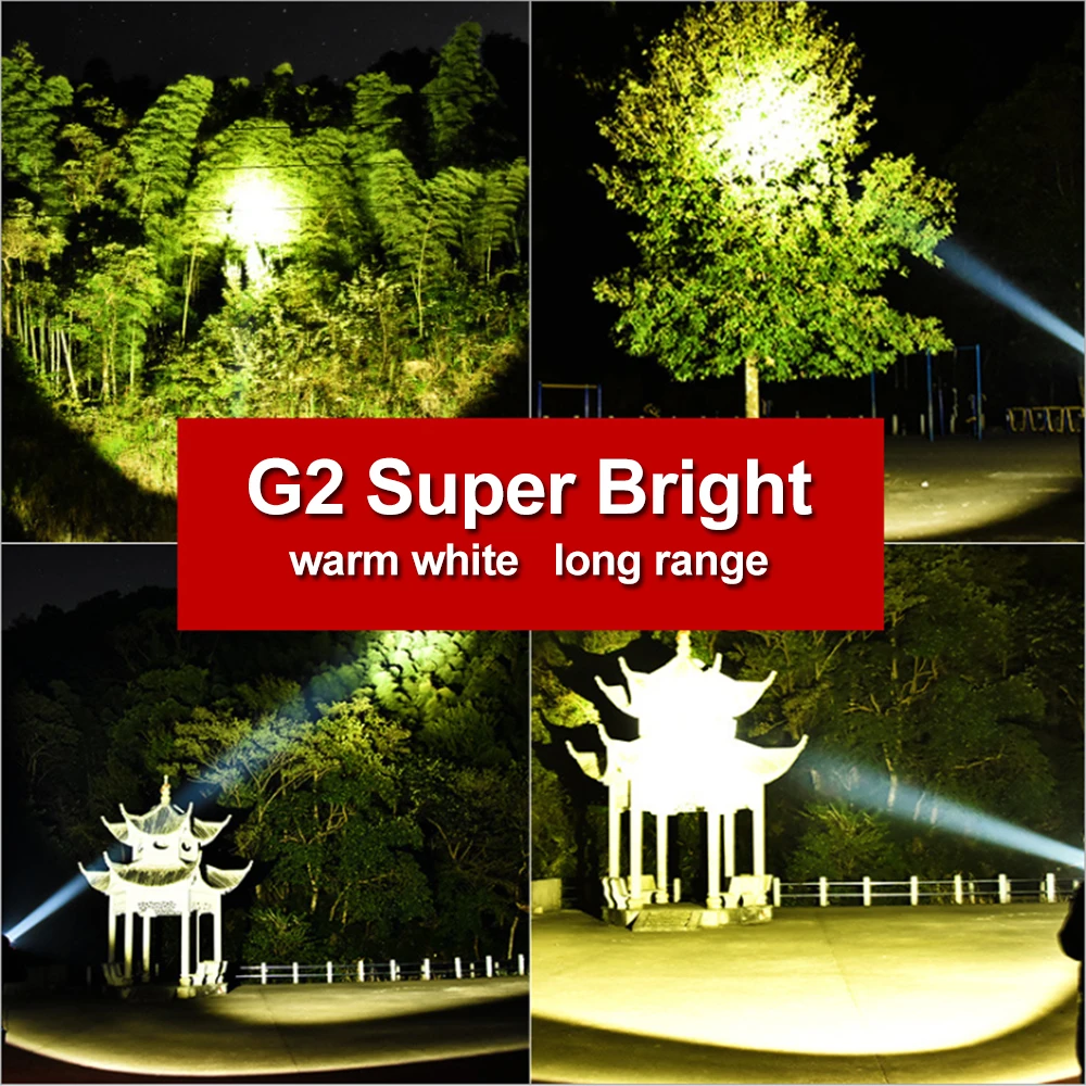 Высокий лм самый мощный G2 СВЕТОДИОДНЫЙ фонарик с прожектором водонепроницаемый фонарь USB Перезаряжаемый специальный аккумулятор 8600 мАч 18650