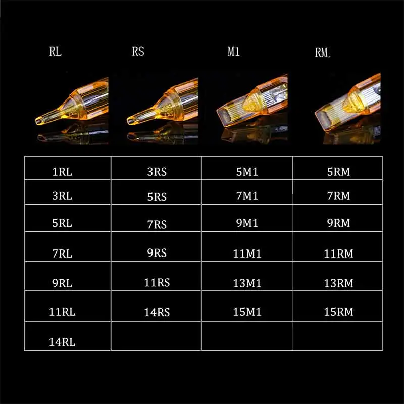 1. Иглы для татуировок изготовлены из точной формы, с низким уровнем шума, это поможет профессиональному татуировщику. 2. RL/RM/M1/RS четыре дополнительных типа с несколькими размерами будут соответствовать различным иглы татуировки. 3. Более того, одноразовый материал быстро изменяется и обеспечивает идеальную, несложную и гигиеническую работу.
