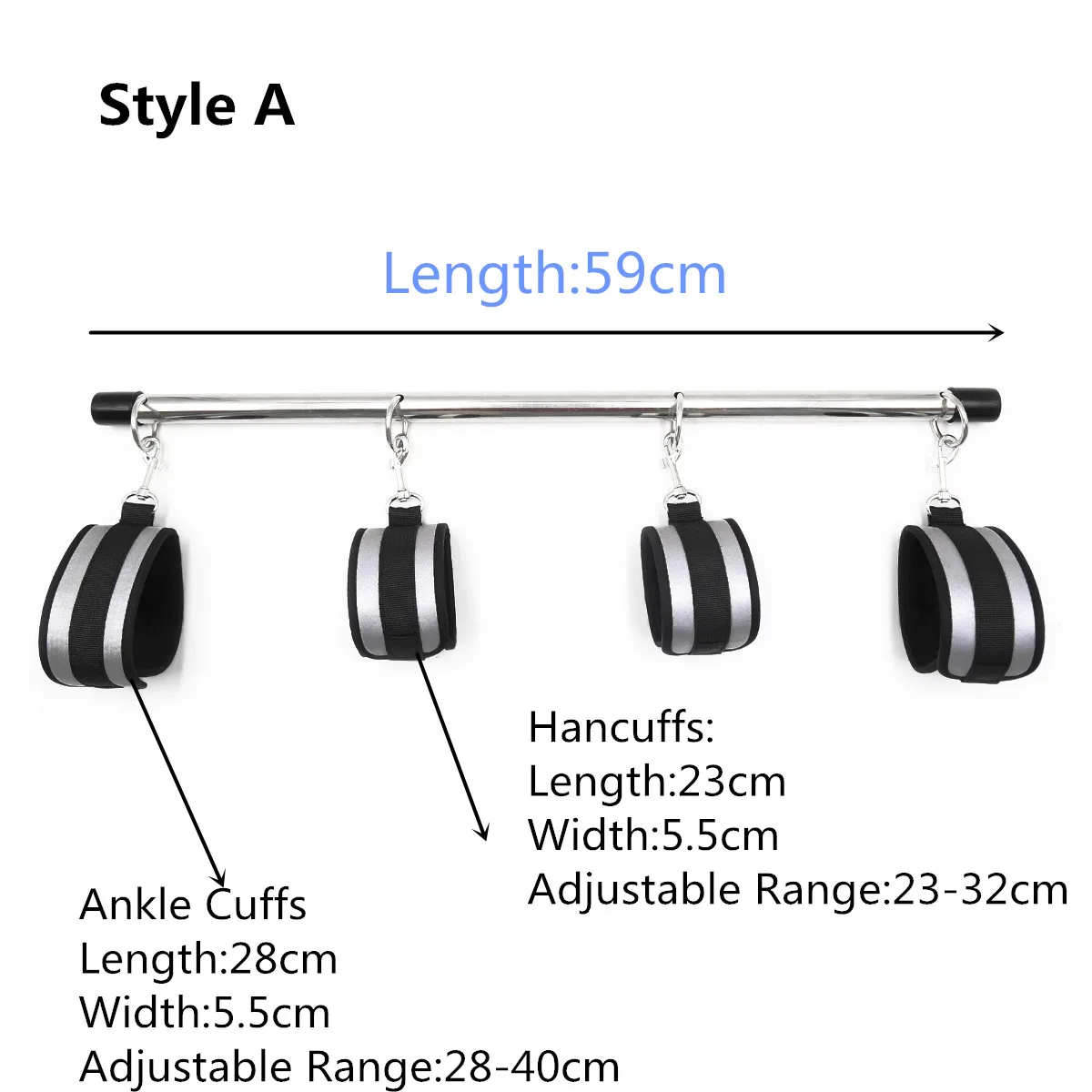 Посылка IВключает:Длинная стальная труба * 1 + короткая стальная труба * 1 + наручники * 2 + манжеты на лодыжке * 2 + воротник на шее с нейлоновымЦепь
