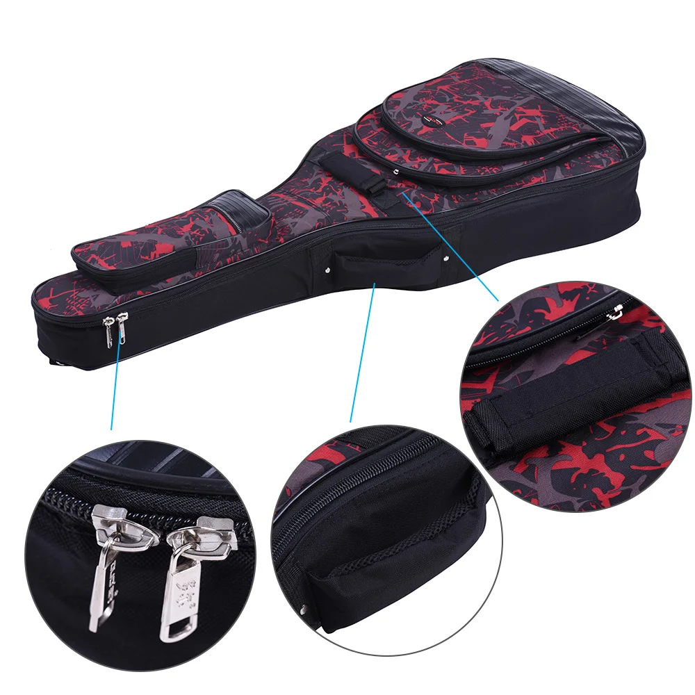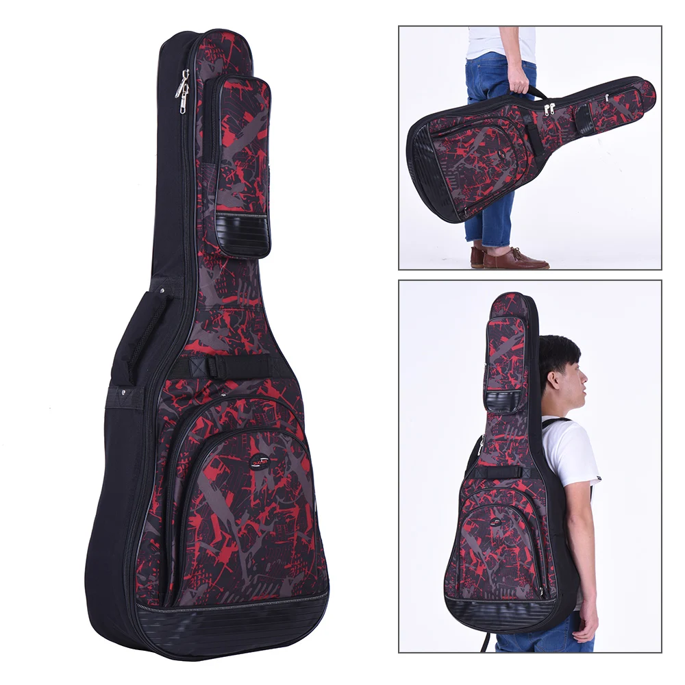 Сумка для гитары предназначена для акустической гитары размером 42 дюйма, имеет несколько карманов, высококачественную внешнюю ткань и внутри держит гитару от царапин и грязи, защищает ее во время транспортировки. Высокая прочность и модная поверхность делают его популярным среди любителей гитары.