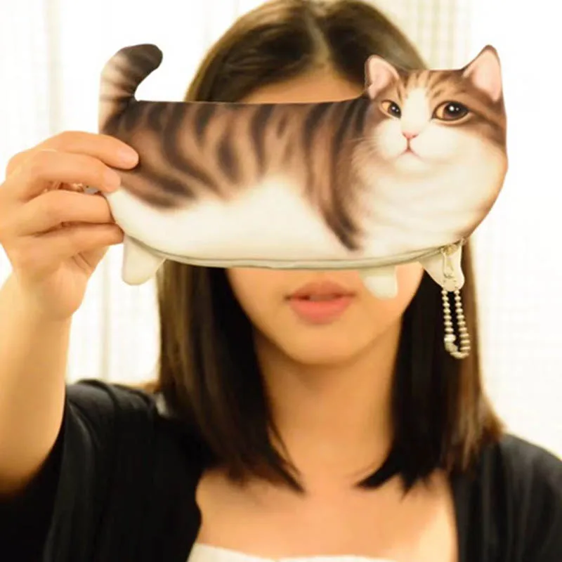 Школьные принадлежности, пенал, чехол, 1 шт., милый полиэстеровый Кошелек для монет, ручки, коробки для хранения, Канцелярский мешочек, студенческий подарок, с принтом кота