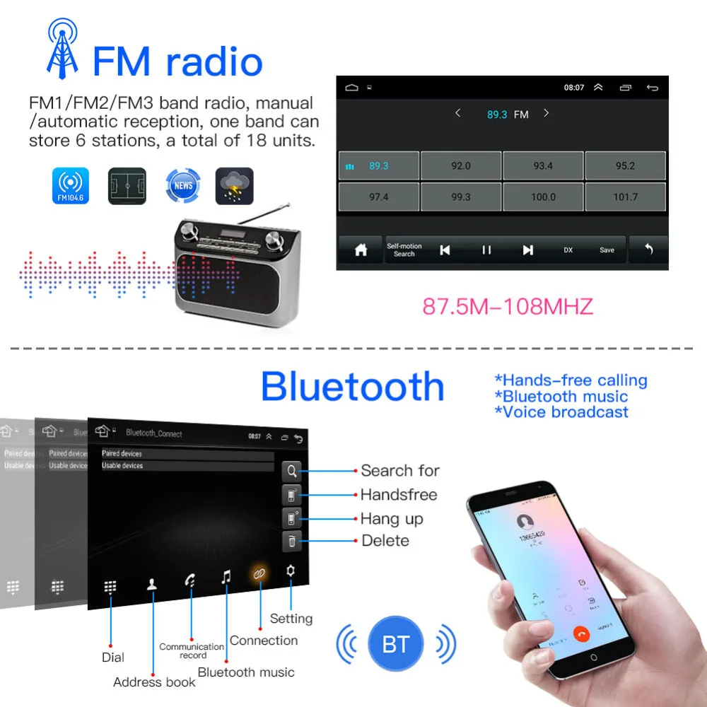 1. Размер сенсорного экрана: 7 дюймов2. Напряжение: 12 В постоянного тока3. Сопротивление динамика: 4 Ом4. Максимальная мощность: 50 Вт * 45. Регулятор громкости: +/-8 дБ (бас 100 Гц ВЧ 10 кГц)6. Диапазон настройки FM:Диапазон настройки: 87,5-108 МГцПрименимая Чувствительность: 15 дБSNR: 50 дБСтерео Разрешение: 30 дБ7. Система парковки автомобиля. Он автоматически превратится в режим парковки, записывает движение. (камера заднего вида в комплект не входит)8. Высокое разрешение: 1080P Full HD. 7 "дюймовый ЖК-дисплей сенсорный экран дать вам фантастический опыт, чтобы смотреть видео высокой четкости. Поддержка формата воспроизведения видео AVI/MP4/FLV/PMP/RM/RMVB/MPG.9. Функция Bluetooth: Встроенный Bluetooth для беспроводной потоковой передачи звука, встроенный микрофон для громкой связи. Решить вашу проблему вызова, когда вы едете. Что еще? Подключите телефон к функции bluetooth, поднимите звуки вашего GPS и ваших любимых песен в автомобильном динамике.10. Многофункциональность: высокий ток USB выход, можно заряжать мобильный телефонИграйте в роли MP3, MP5 плеера, радио, датчика парковки и т. д. это ваш лучший выбор для вашего автомобиля.11. Язык: китайский/английский/французский/итальянский/корейский/японский/арабский/испанский/португальский/русский/Турецкий/Вьетнамский/Иврит/Польский/немецкийОсобенности:1,7 дюймов HD Автомобильный Радио MP5 плеер с цифровой сенсорный экран.2. Поддержка Bluetooth громкой связи, bluetooth музыкальный плеер3. Видео вход, может быть подключен к задней камере4.24Bit DAC, высокая точность снижения качества звука;5. Поддержка аудио форматов APE, FLAC, WAV, DIS lossless, Поддержка высокой скорости бит! Качество звука до уровня температуры CD;6. Поддержка формата WAV 24 бит 96 кГц, более высокое разрешение музыки, чем CD;7. Воспроизведение аудио: DIS, MP3, WMA, ACC, OGG, WAV, RA, AC3, MP2, AMR и так далее.8. Воспроизведение видео: AVI, MP4, FLV, PMP, RM, RMVB, MPG и другие форматы.9. Поддержка просмотра изображений (JPEG и другие форматы)10. Поддержка динамического меню.11. Поддержка tf-карты, высокоскоростной USB 2,012. Полнофункциональный пульт дистанционного управления.13. Все новые чипсет обработки (ЦП), более быстрая реакция, более стабильная производительность, более мощные функции14. Модный дизайн, регулировка громкости ручки.15. Различные настройки звука (SEL): Электронный громкость, высокие частоты, бас, баланс влево и вправо, переднее и заднее звуковое поле.16. Использование специального чипа DSP для достижения различных декодирования аудио формата без потерь/потери;17. Аппаратная Электронная обработка звука (эквалайзер), различные режимы звука, высокий и низкий тон может быть скорректирован;18. Полный электронный цифровой поиск радио, высокопроизводительная цифровая настройка FM радио автоматическое сканирование, 18 хранения радио.19. Функция воспроизведения памяти.20. Последняя поддержка: воспроизведение папок, секретное хранилище, бесплатное вещание, список отображения.21. Поддерживает shuffle, повторяет все, повторяет одно, повторяет каталог.22.AUX аудио входной интерфейс может быть внешним MP3, мобильные телефоны, музыкальные плееры и другие аудио вход.23. Поддержка USB для высокой выходной мощности, для зарядки мобильный телефон.* Налог на импорт