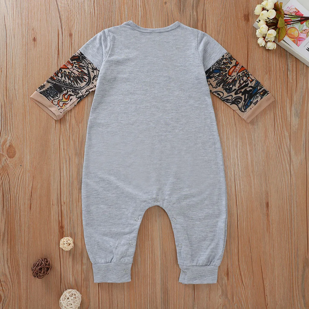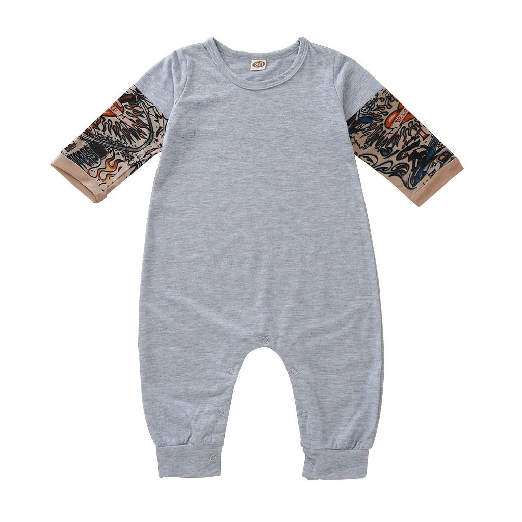 Newborn Baby Boy Tattoo Printed Long Sleeve Patchwork Romper Autumn Bodysuit