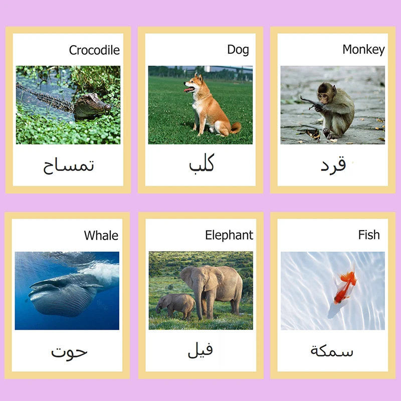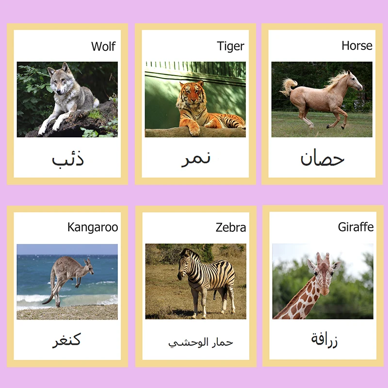 Детские арабские фонарики животные Обучающие арабские флэш-карты английские слова карты игры Монтессори Игрушки для раннего развития для детей
