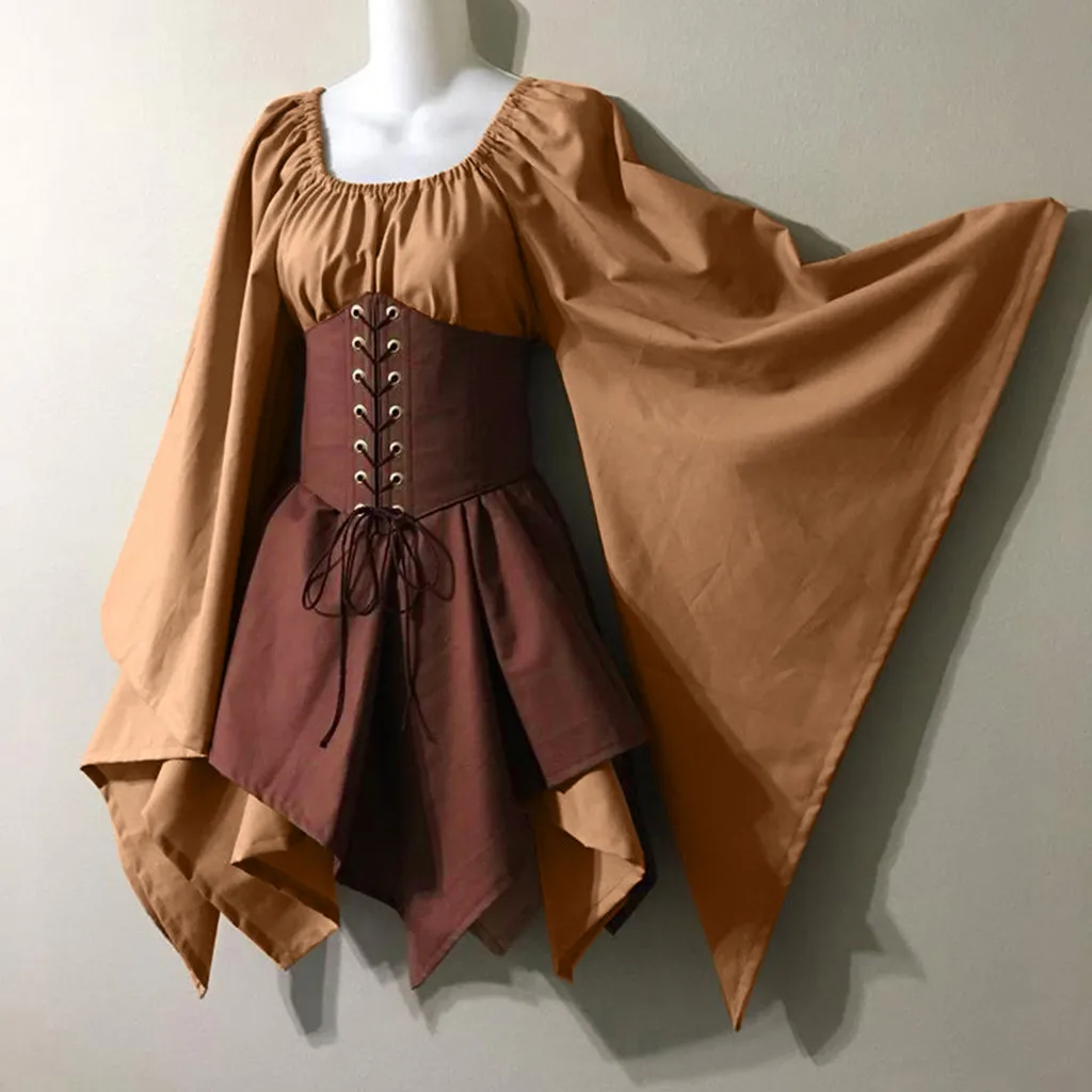 Хэллоуин Женщины средневековый Косплей костюмы Готический Ретро с длинным рукавом корсет платье