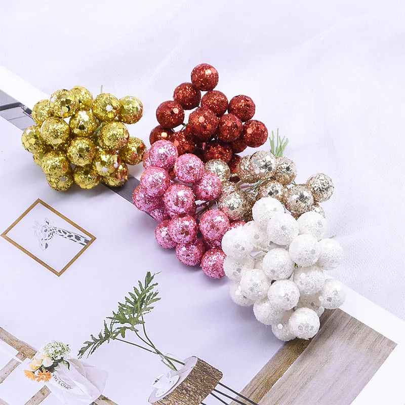 100 шт. Искусственный Мини Фруктовый Декор Горшечное растение блестящая пена вишневые ягоды тычинки DIY Свадебные праздничные вечерние яркие украшения