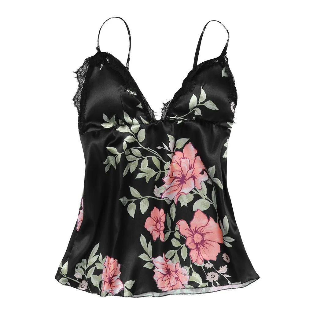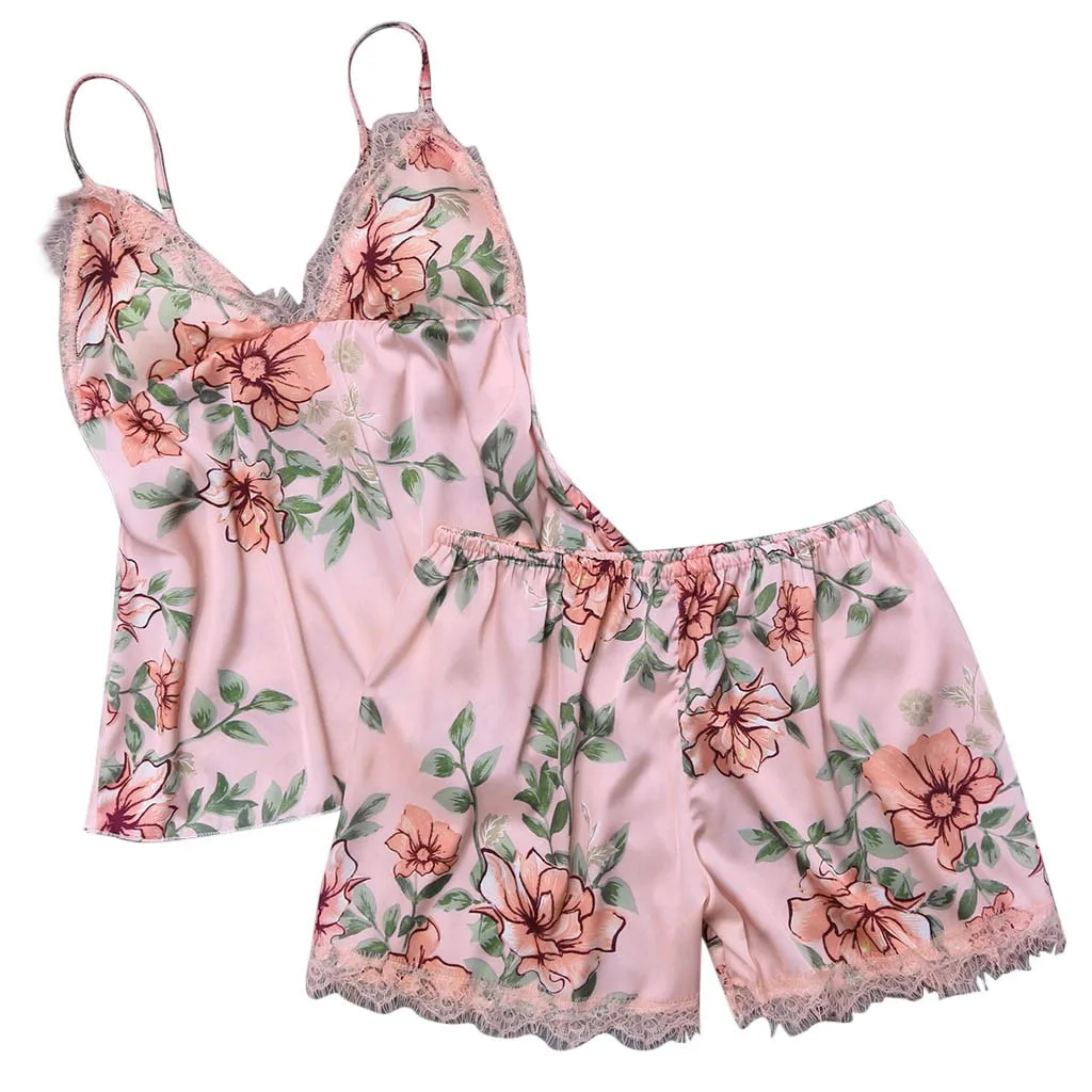 Женское сексуальное белье, пижамный комплект из шелкового атласа, сексуальное кружевное белье с цветочным принтом, соблазнительное нижнее белье с v-образным вырезом, пижама Mujer, 2019