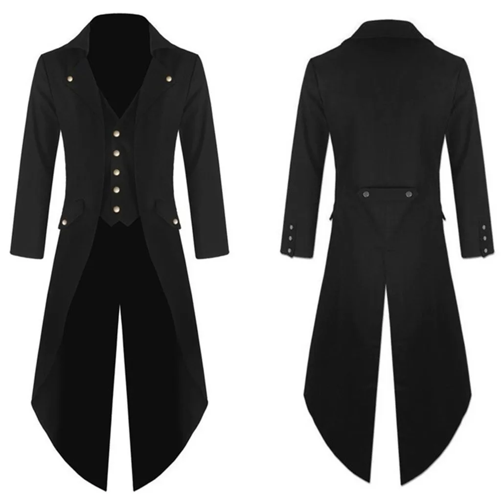Мужское винтажное пальто в стиле панк, готика, ретро, модная Длинная ветровка