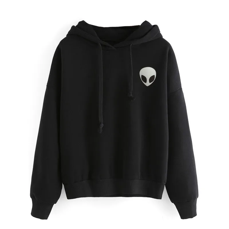 Женская толстовка с капюшоном Harajuku, однотонная Повседневная Свободная Толстовка с длинным рукавом и принтом пришельцев на осень и зиму