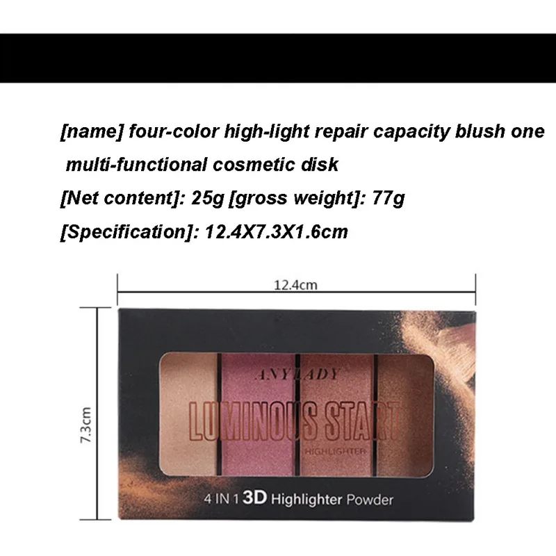 4 цвета светящиеся тени для век Палитра для румяны долговечные яркие цвета кожи водонепроницаемые тени для глаз румяна