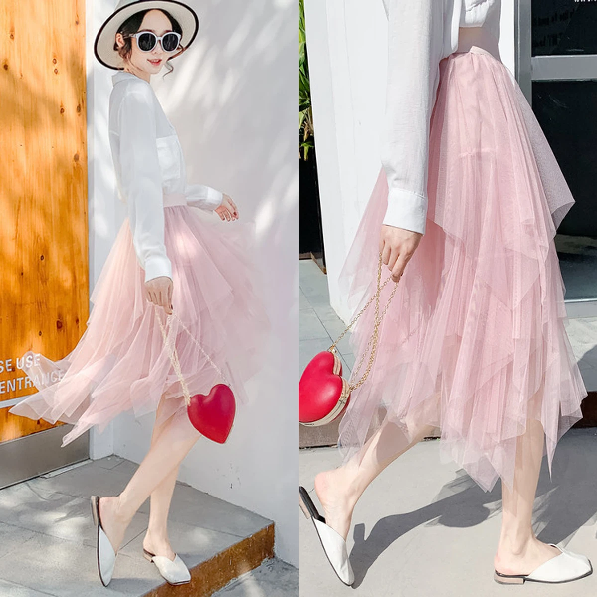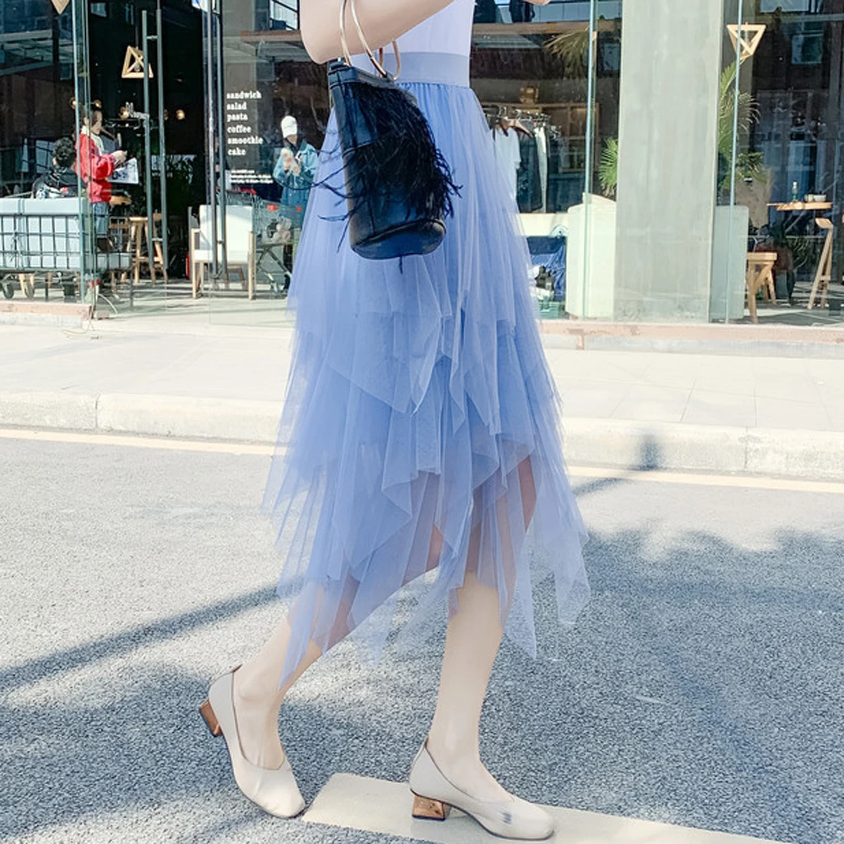 1. Однотонная Асимметричная сетчатая юбка-американка из мягкого материала, светильник, удобная, приятная на ощупь, изготовлена из весовой ткани, позволяющей быть беззаботным и игривым. Идеально подходит для весны и лета.