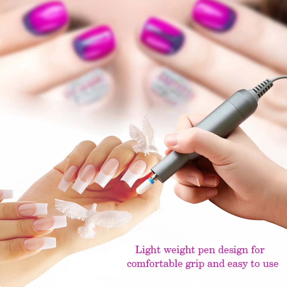 С регулировкой 30000 об/мин, эта электрическая дрель для ногтей является профессиональной и портативной. Идеальная замена для традиционных инструментов для маникюра. Может эффективно полировать ногти и переделывать края ногтей, помогает создать изысканный гвоздь.
