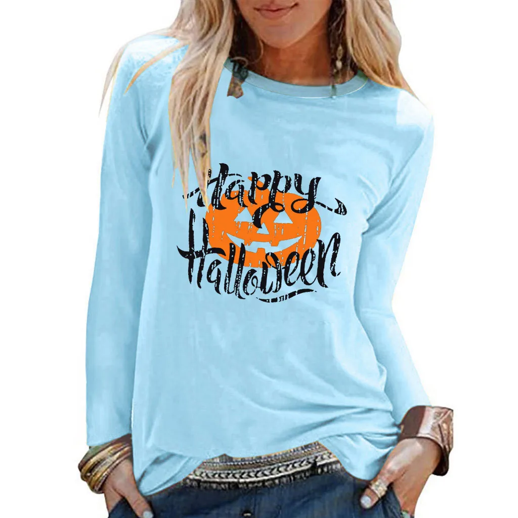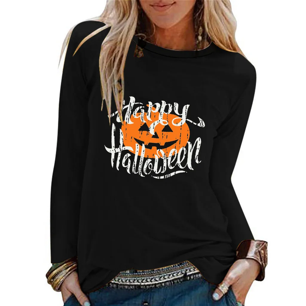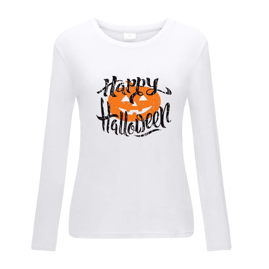 Женская повседневная обувьХэллоуин Рубашка с принтом и круглым вырезом; Топ с длинными рукавами; Свободная футболка; Блузка