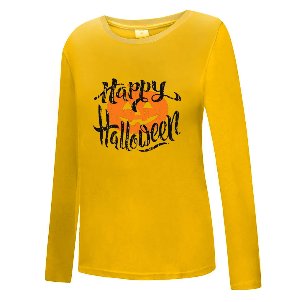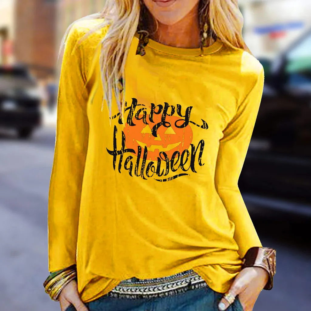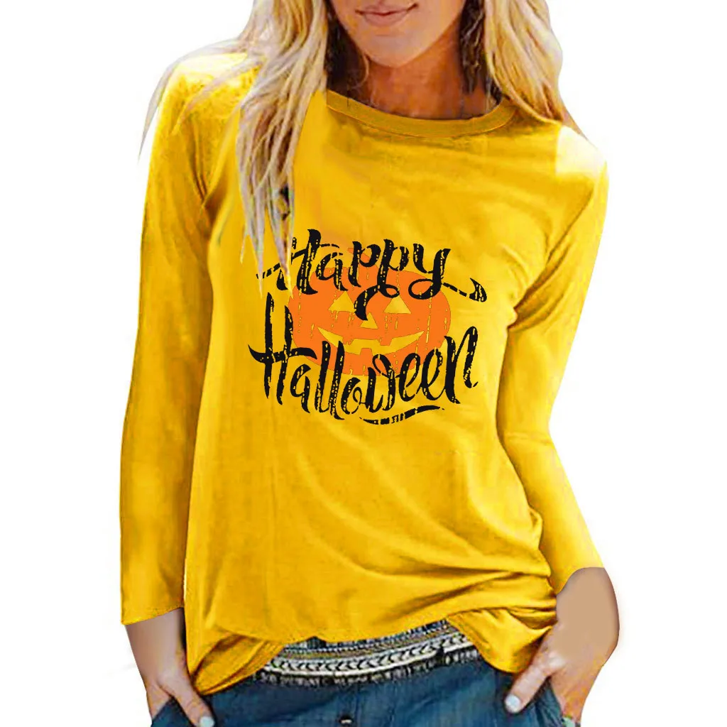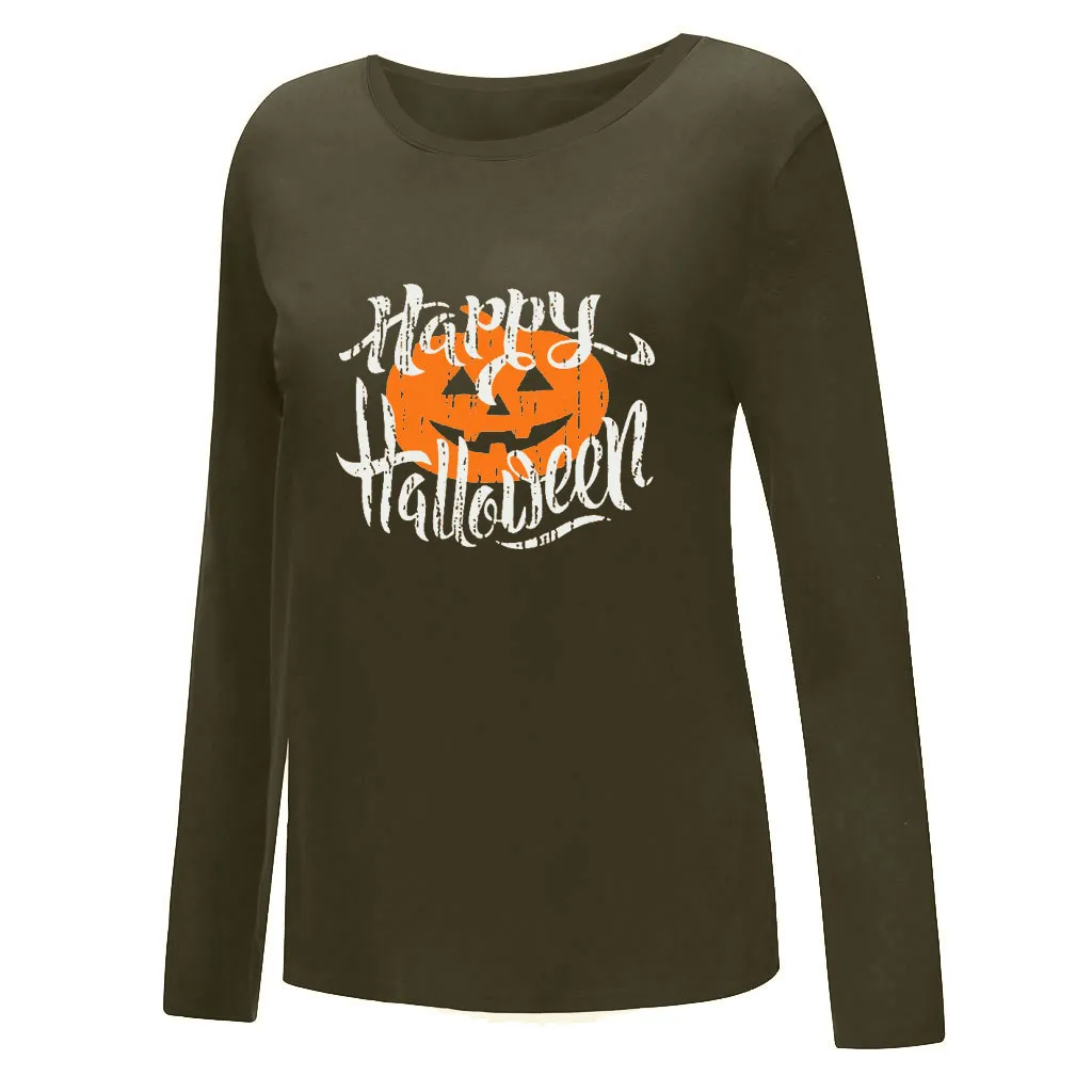 Женская повседневная обувьХэллоуин Рубашка с принтом и круглым вырезом; Топ с длинными рукавами; Свободная футболка; Блузка