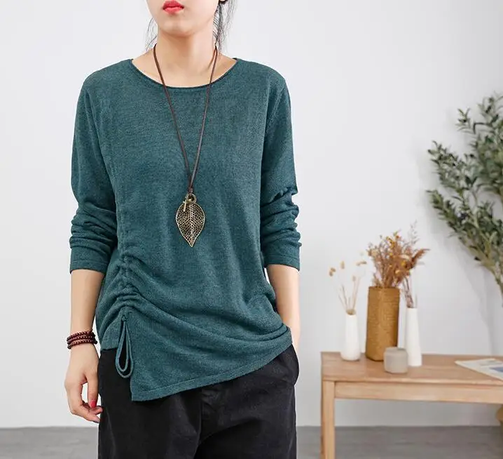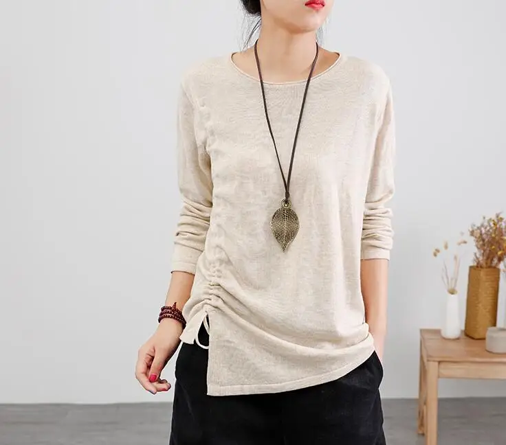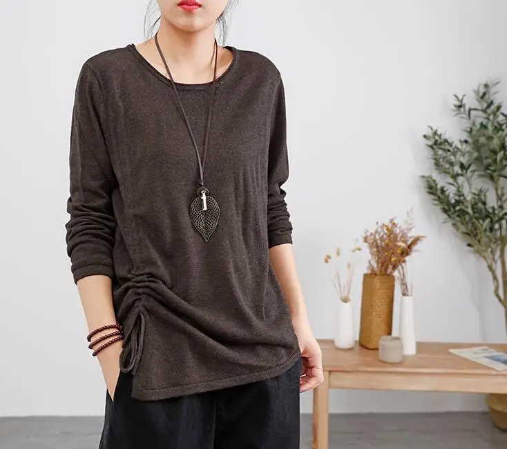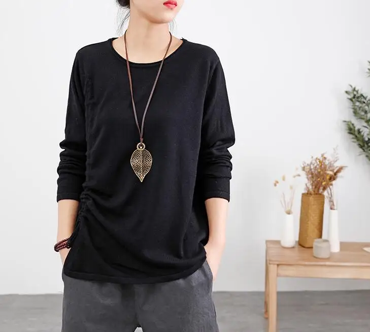 Женские хлопковые топы 2019 осень весна трикотажные футболки Draw String тонкие свободные повседневные женские футболки