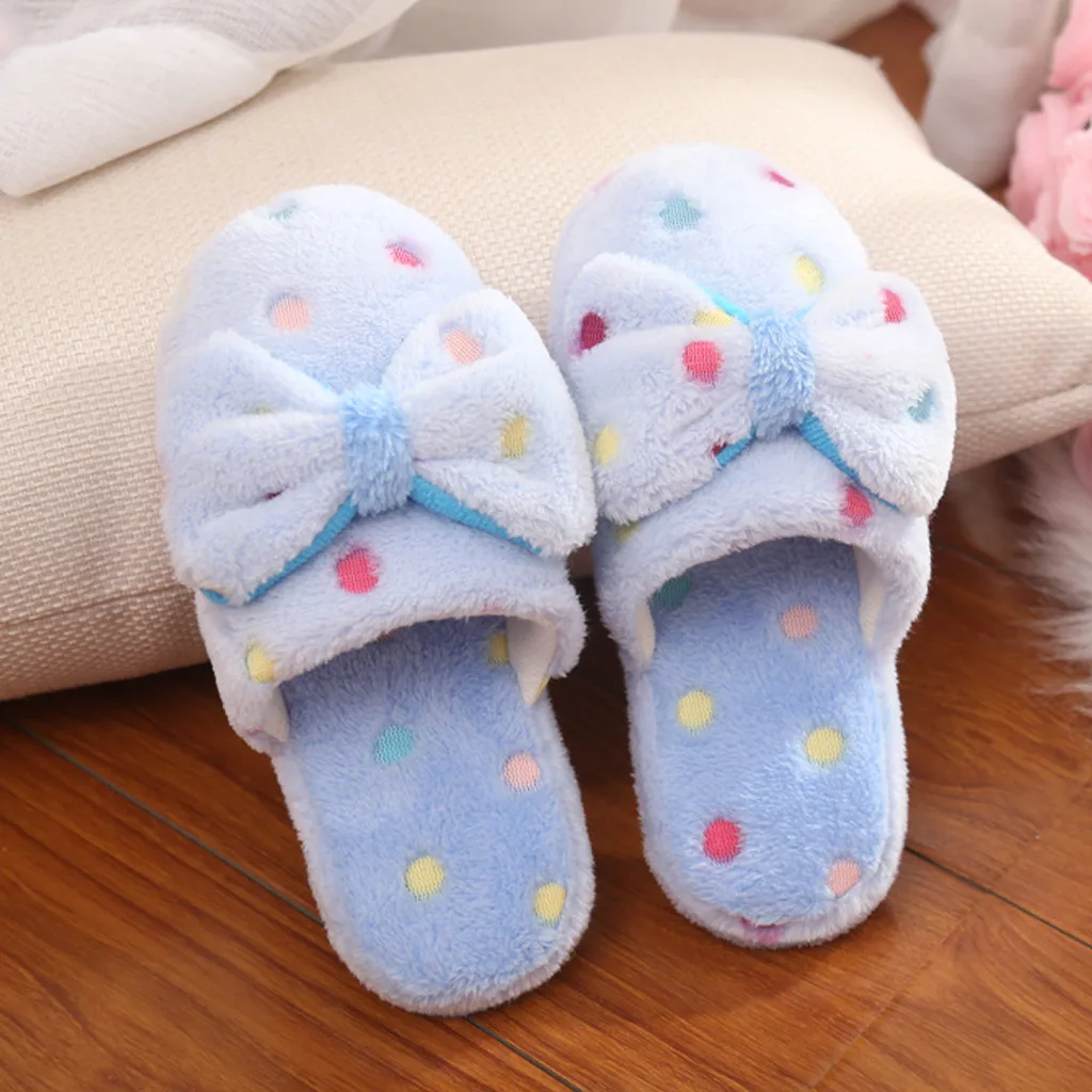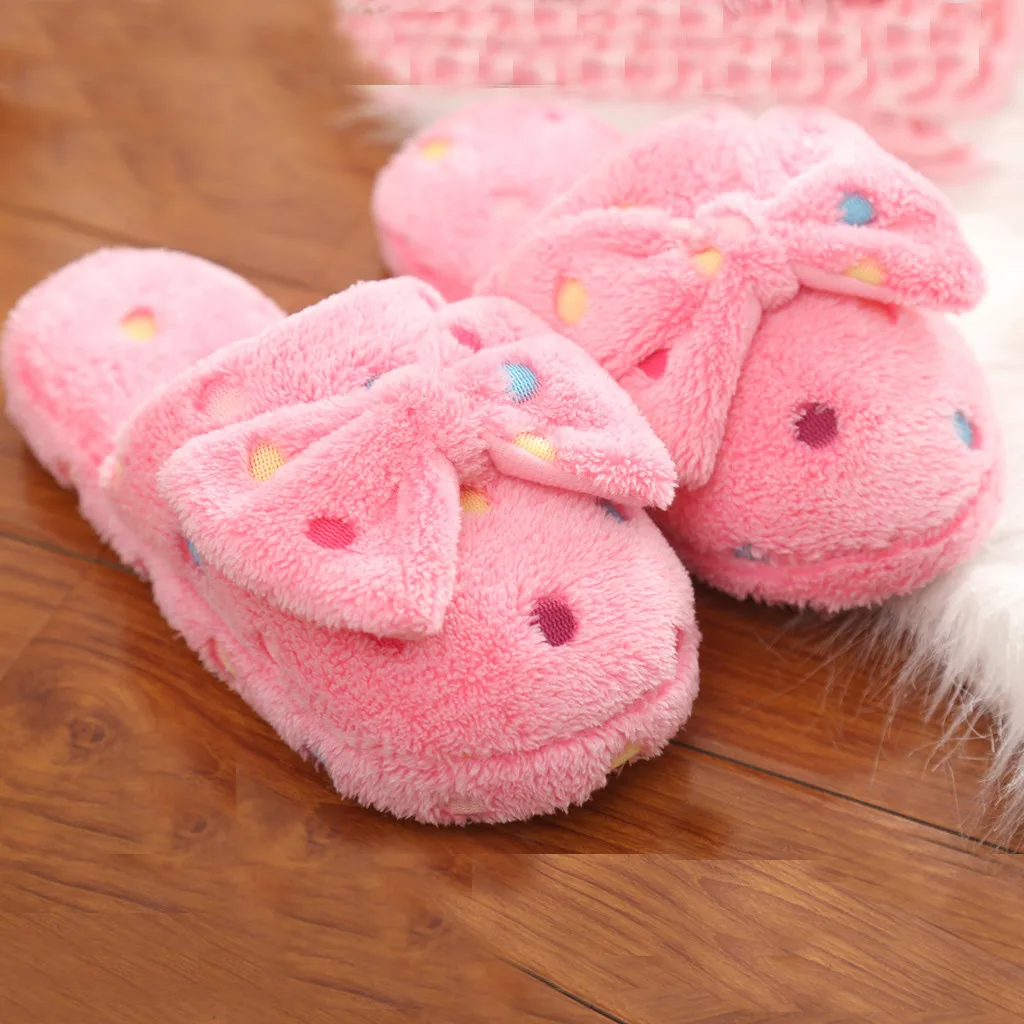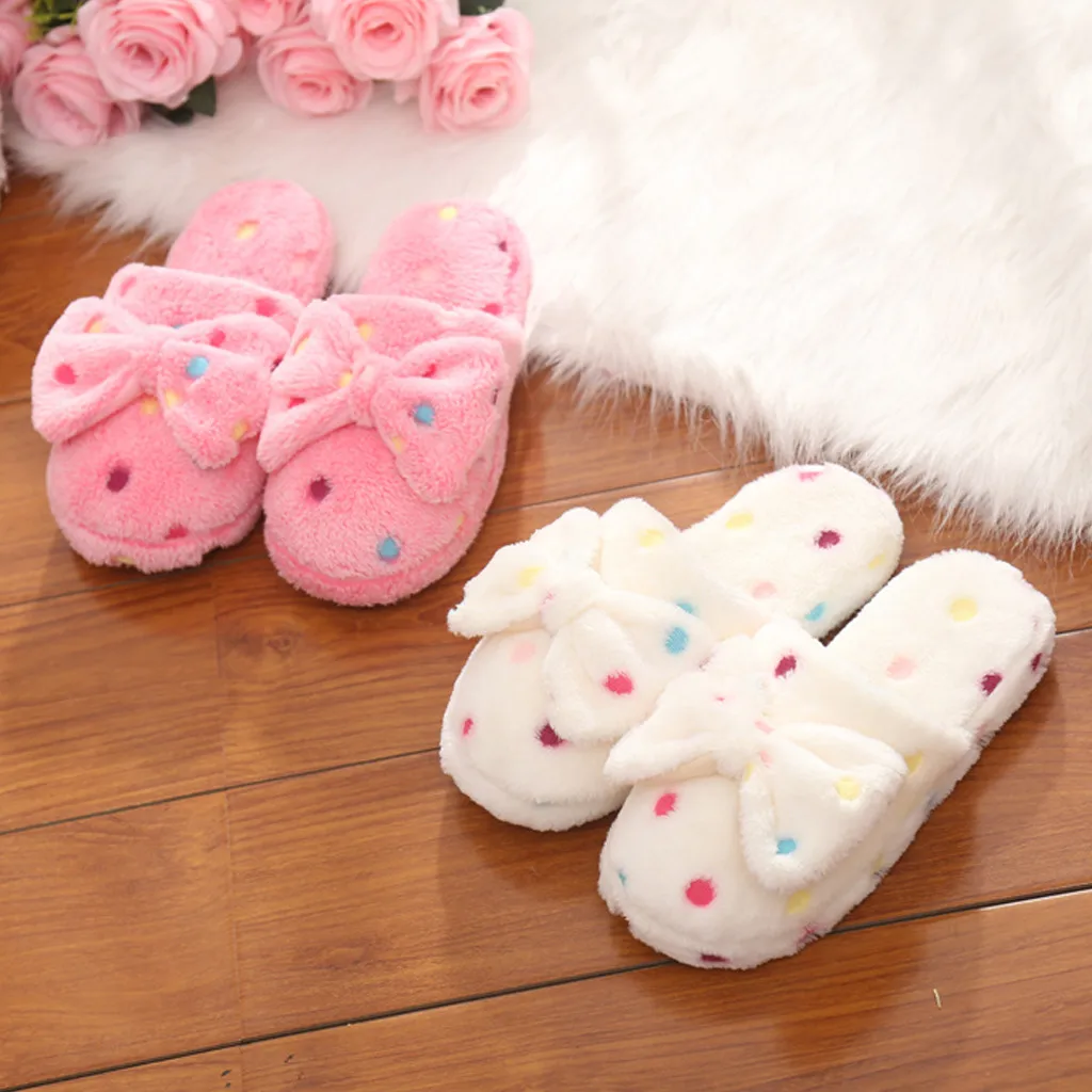 Новинка; Женские хлопковые тапочки с бантом; Милые женские зимние теплые домашние Нескользящие тапочки