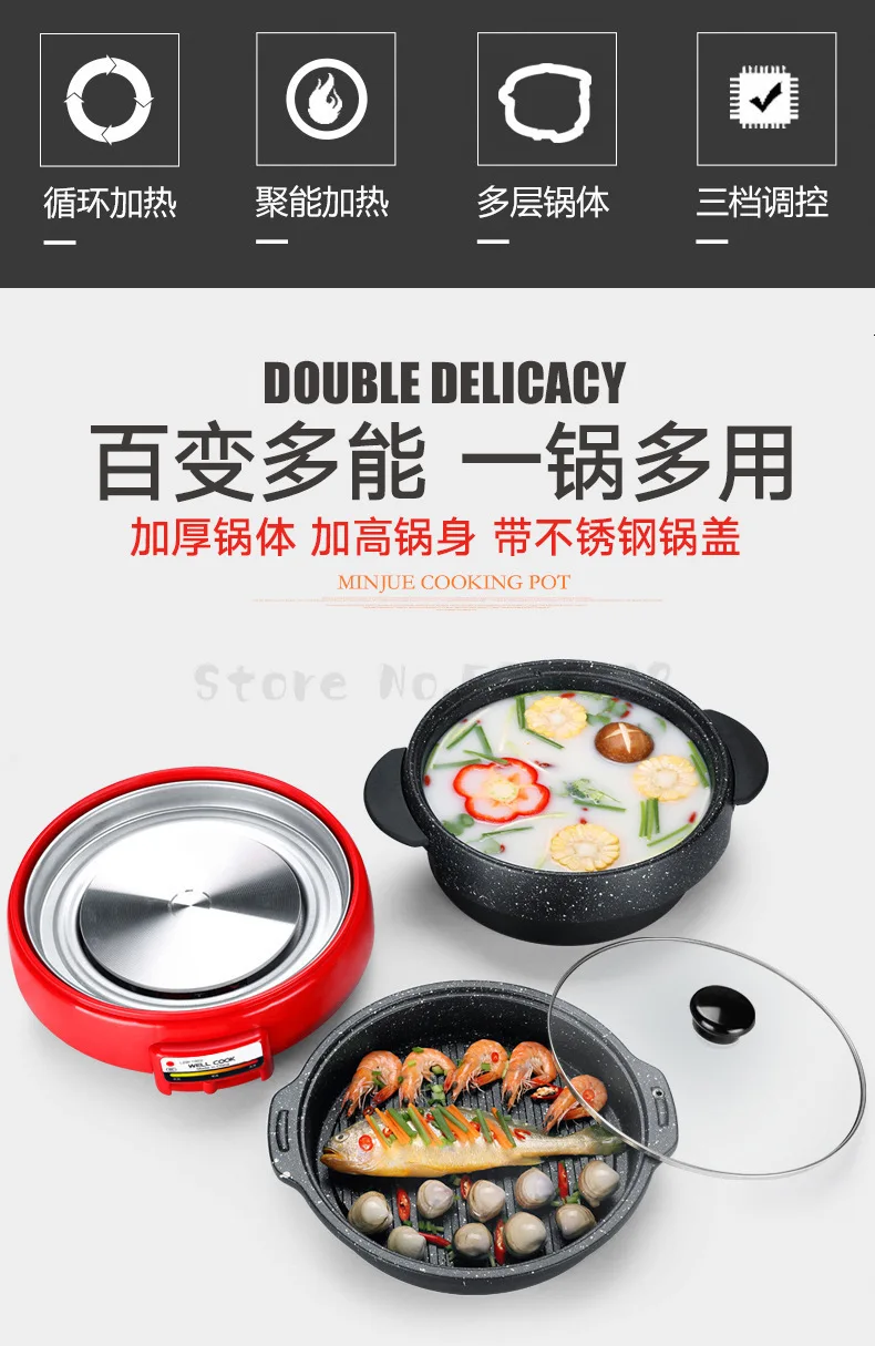 Электрический горячий горшок Электрический сковорода домашняя многофункциональная электрическая плита Maifan каменные приготовления пищи барбекю один горшок