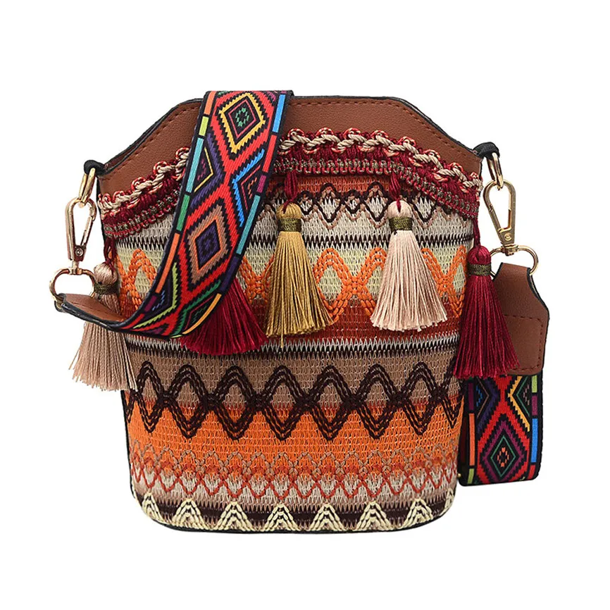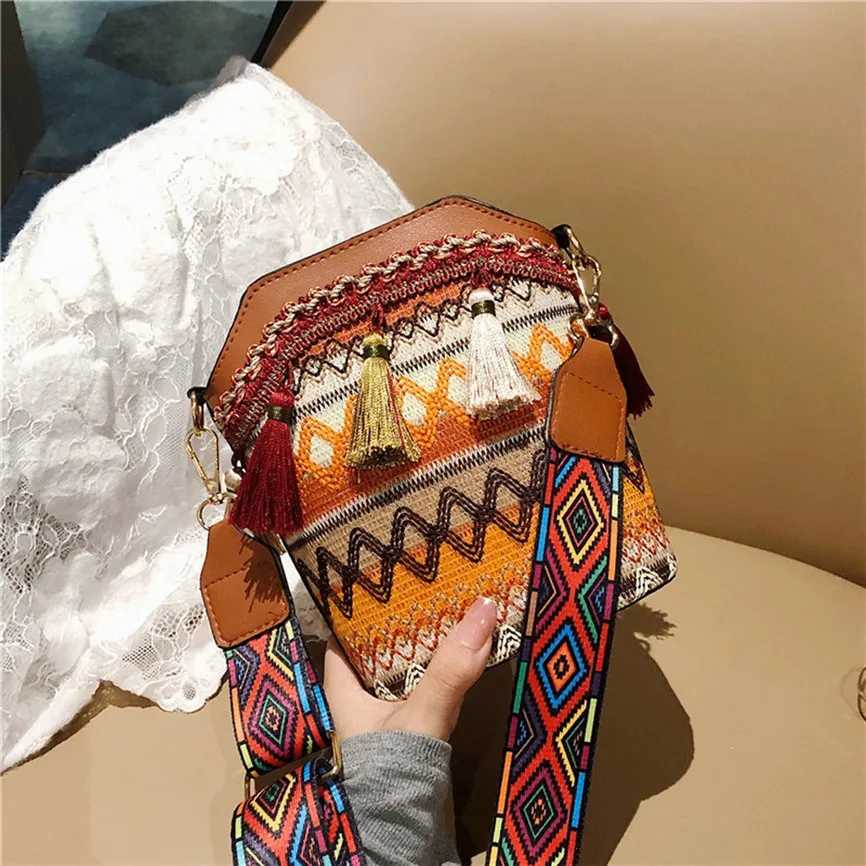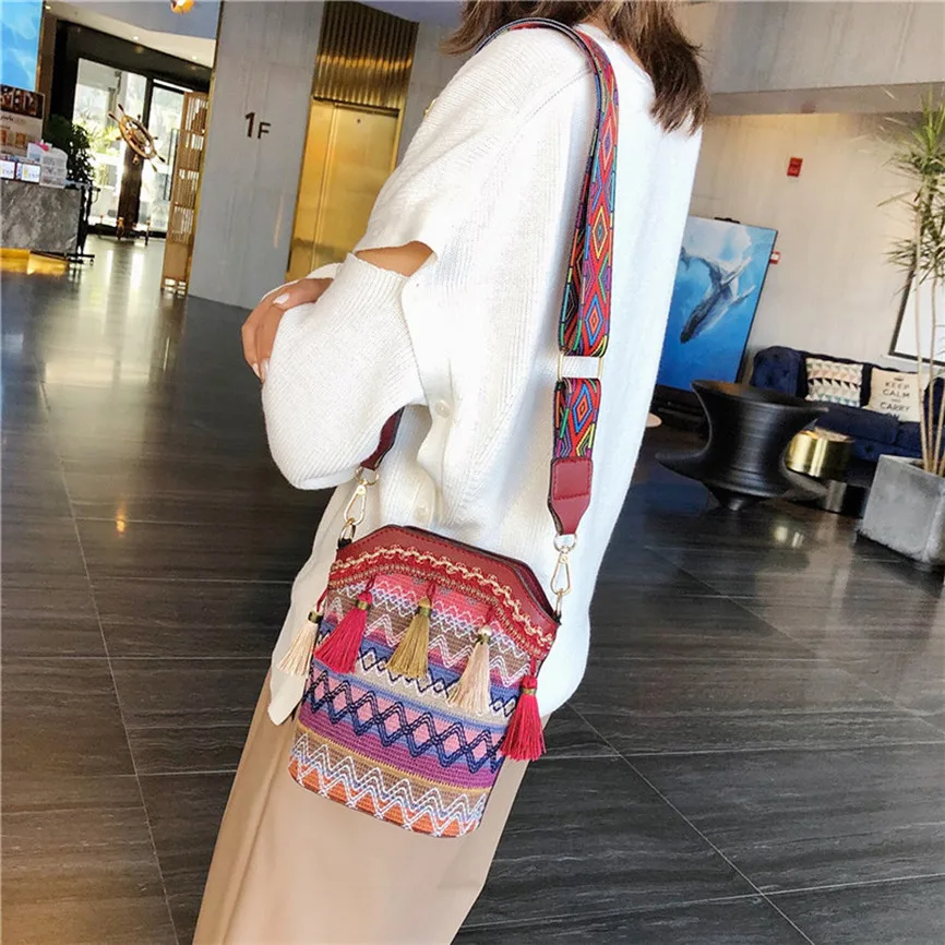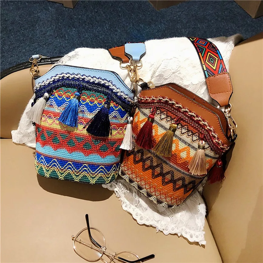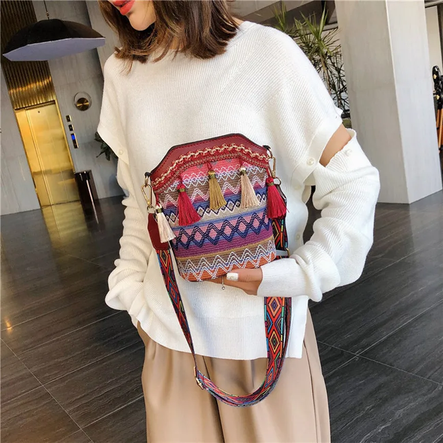 Женские сумки через плечо в стиле ретро с кисточками, шерстяные тканые многоцветные сумки на молнии с цепочкой, диагональная посылка, сумки через плечо, сумки-мессенджеры