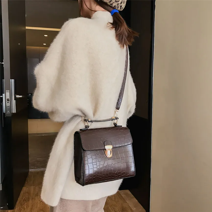 Роскошные женские сумки-мессенджеры, одноцветная кожаная сумка на плечо с клапаном, винтажная сумка с крокодиловым узором, многофункциональная модная женская сумка, 2019