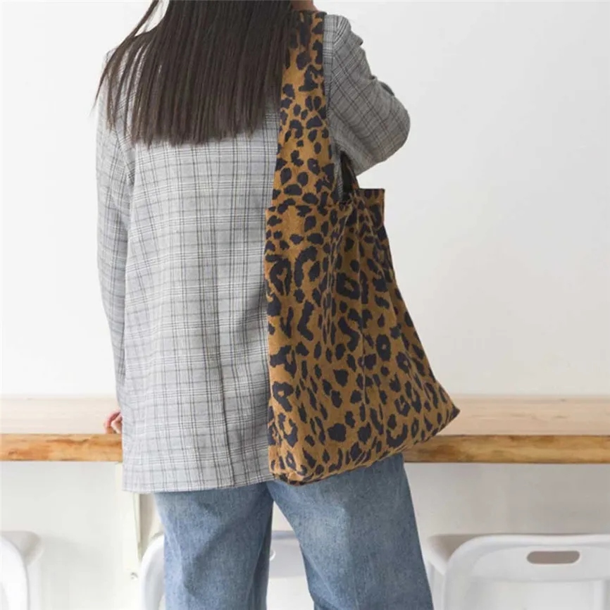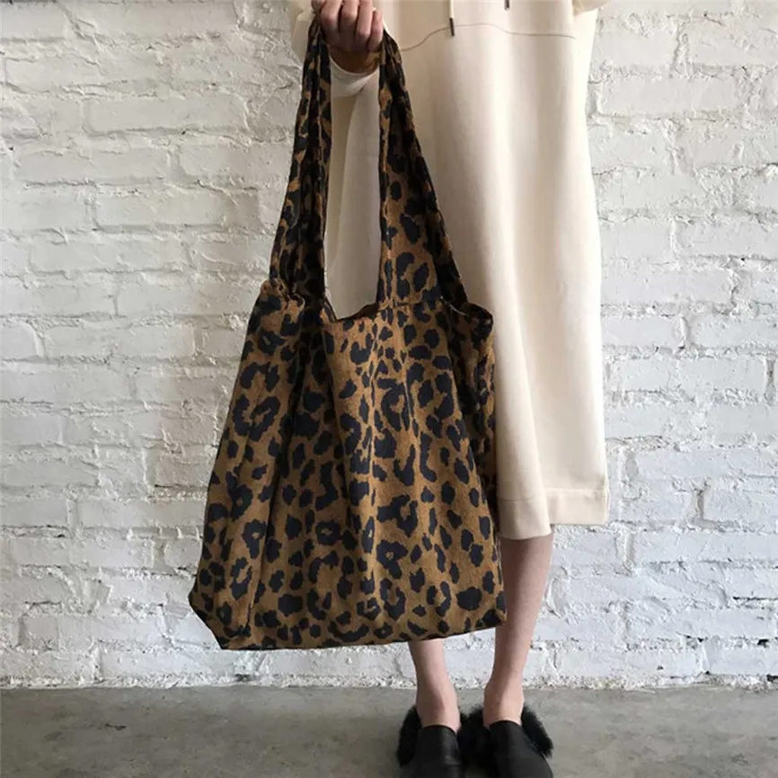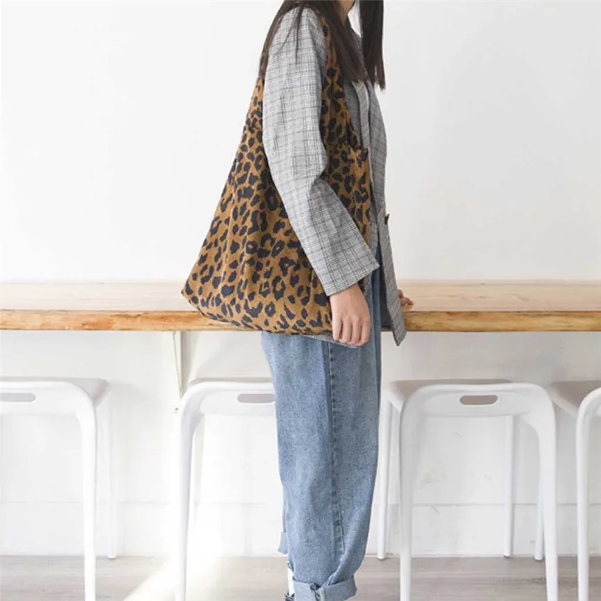 Холщовая Сумка с леопардовым принтом, модная женская сумка через плечо, Большая вместительная сумка, сумки для покупок, женские универсальные сумки, Bolso Bandolera Mujer