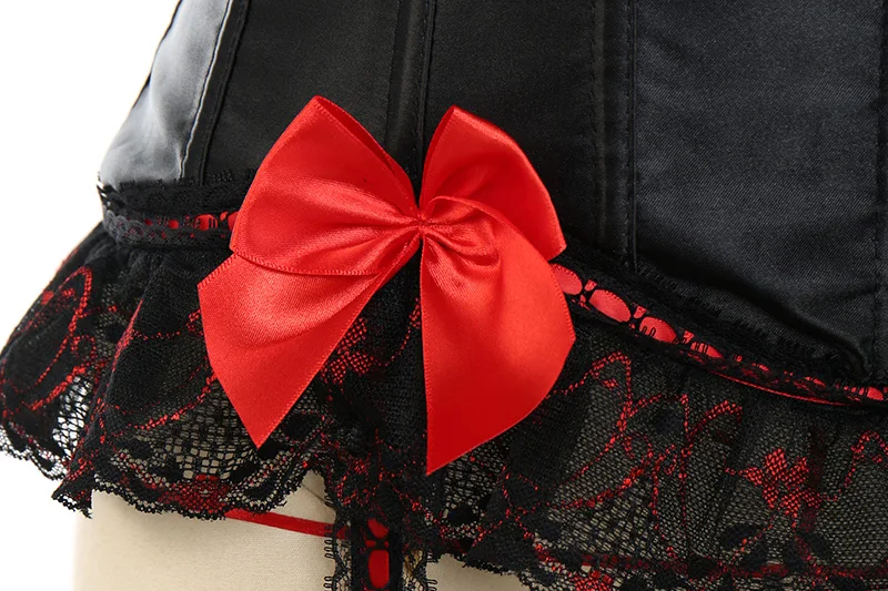 Размер: S/M/L/XL/2XL/3XL/4XL/5XL/6XL Цвет: черный Материал: полиэстер, спандекс Уменьшение: может уменьшить обхват талии на 2-3 дюйма Костей: 12 пластиковых косточек Изюминка: подчеркивающая сексуальную и мелкую талию женщин Кружево сзади: позволяет завязать сзади, стройнит талию Применение: стимпанк, костюмы на Хэллоуин, свидания, Бурлеск, интимный Стиль покупатель может свободно выбирать размер В комплекте: корсет и стринги Местоположение склада: Китай, США Отлично подходит для стимпанк со стрелками, то же время Танцы, Хэллоуин вечерние Косплей-костюм пирата или Другое случаи жизни
