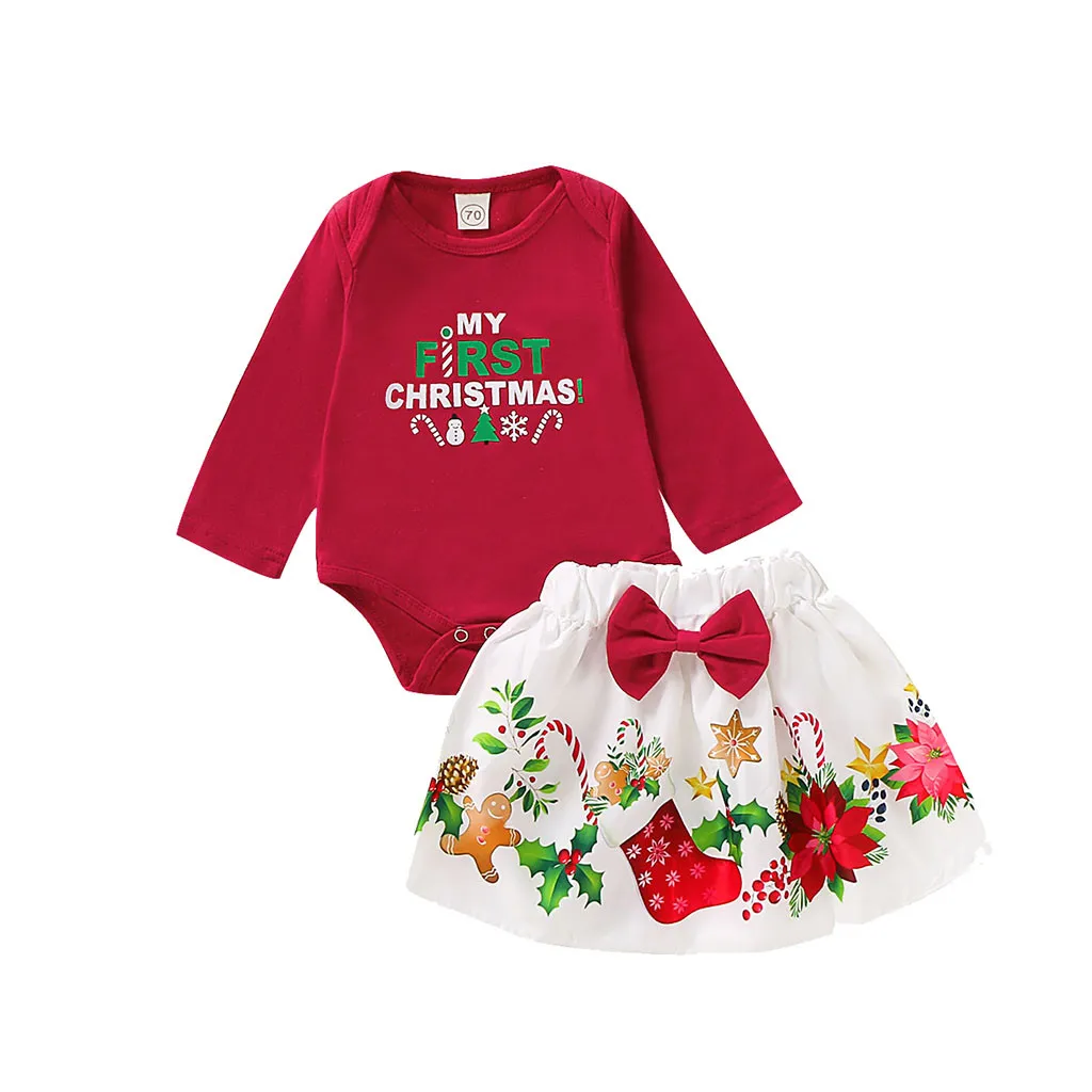Комбинезон с принтом рождественских букв для маленьких девочек; Боди + юбки с мультипликационным рисунком