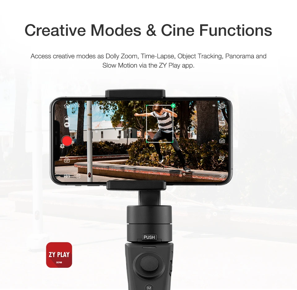 Доступ к творческим режимам, как Долли зум, промежуток времени, отслеживание объекта, панорама и медленное движение через приложение ZY Play.