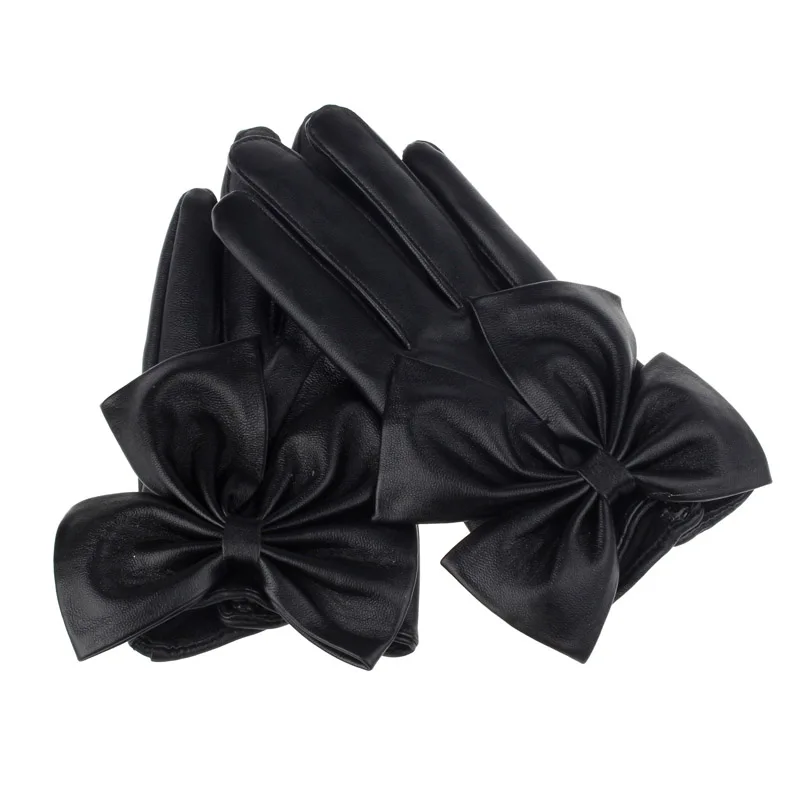 Женские кожаные перчатки с бантом-бабочкой, модные зимние перчатки