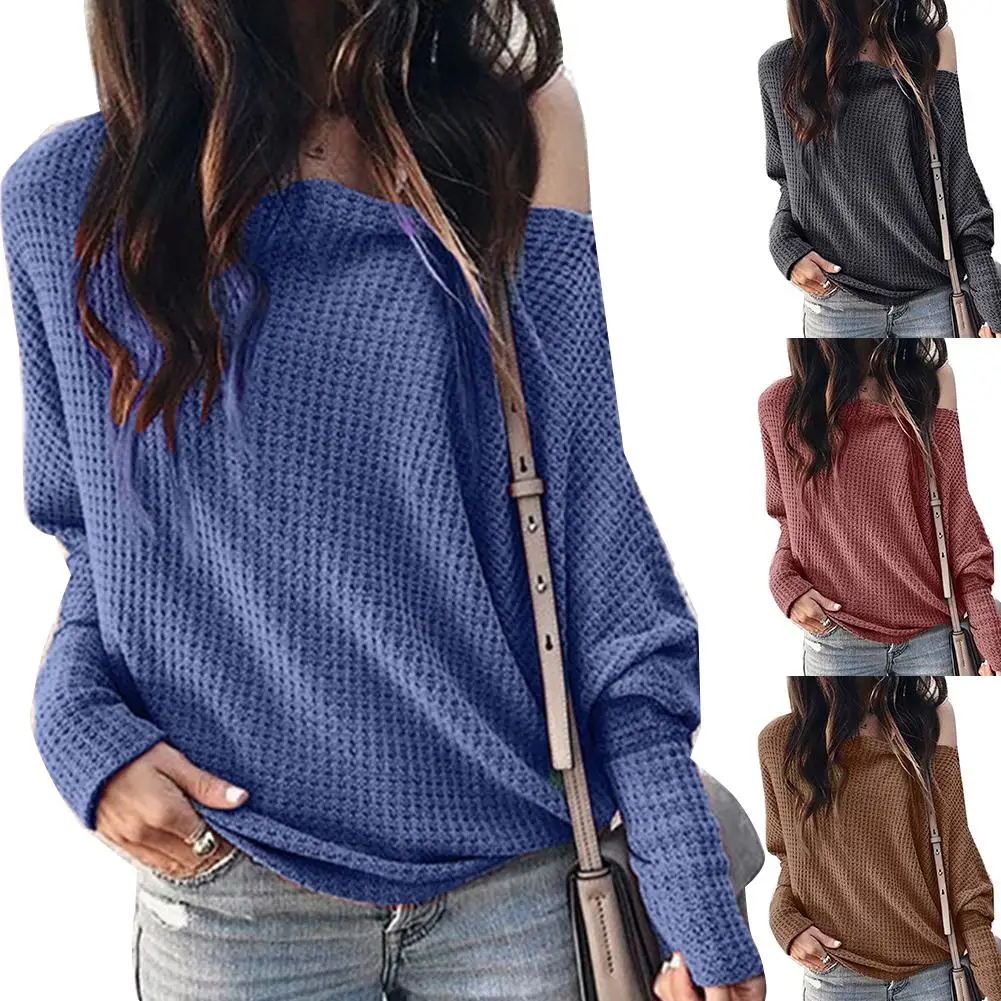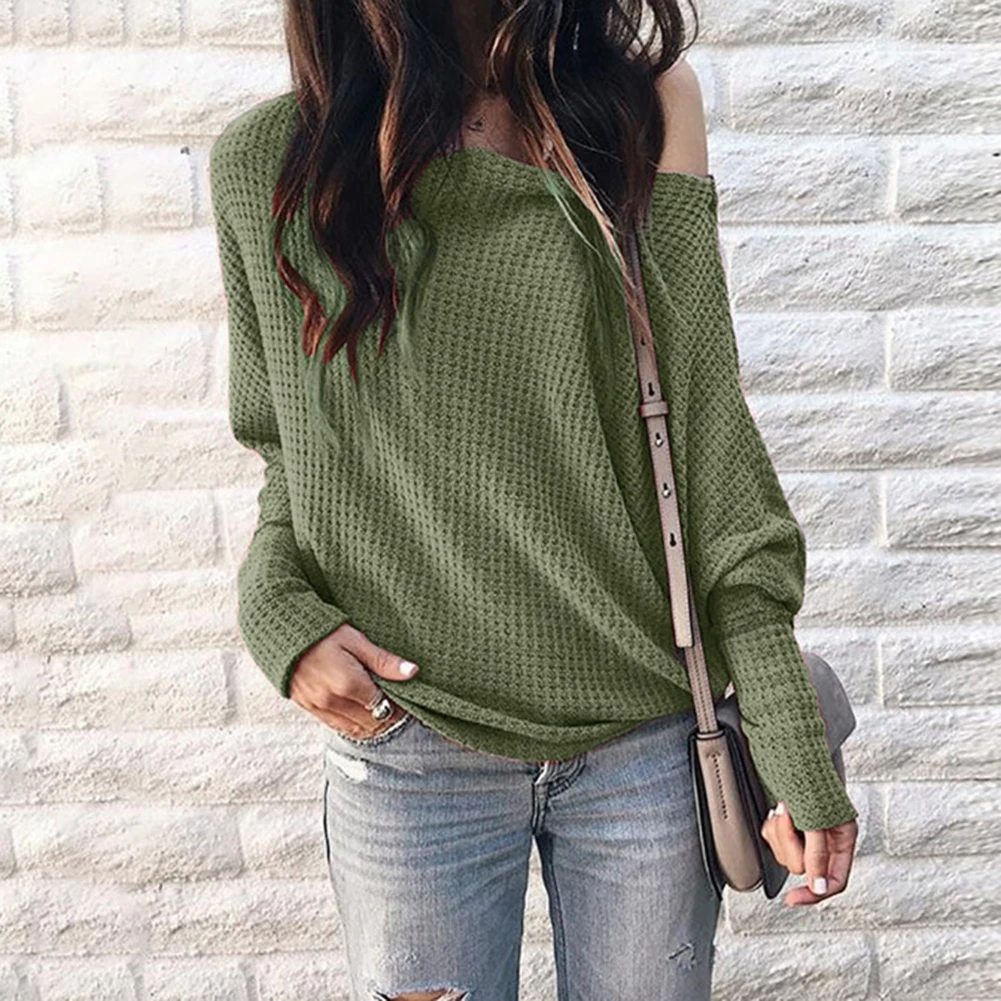 Женский однотонный пуловер с рукавами-фонариками вязаный свитер джемпер