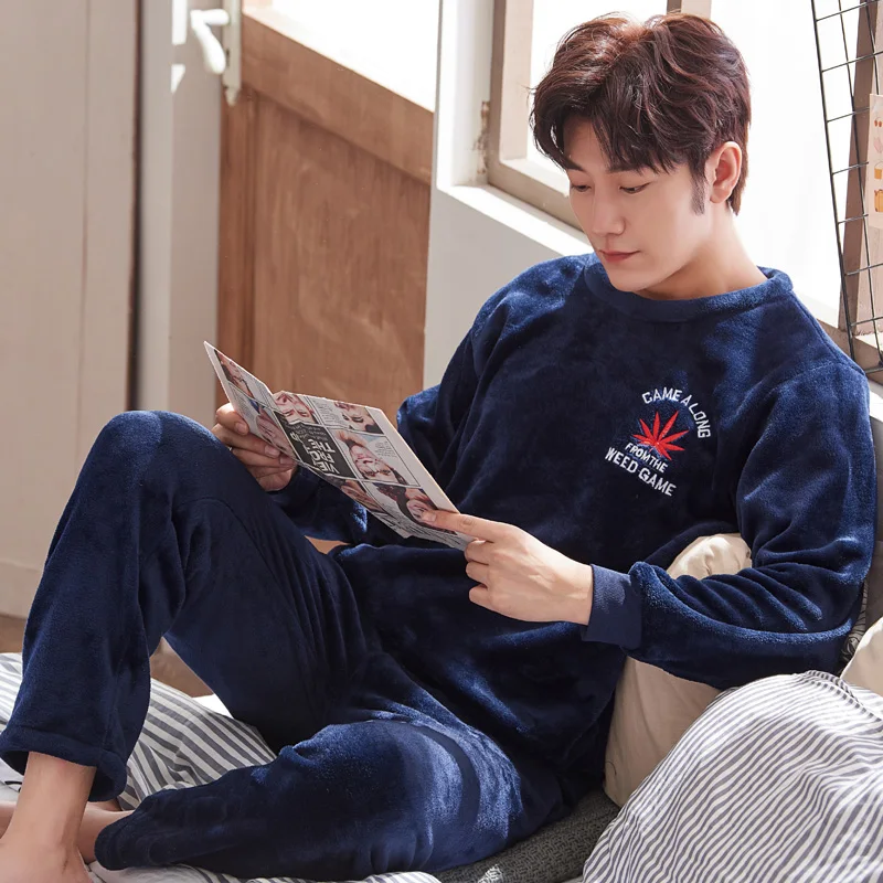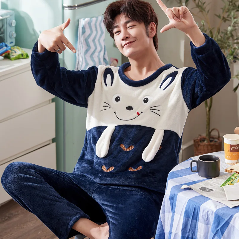 Стильные Мужские пижамные комплекты, Осень-зима, теплые фланелевые Мужские пижамные комплекты, пижама с длинными рукавами, топ + штаны, пижамный комплект для отдыха