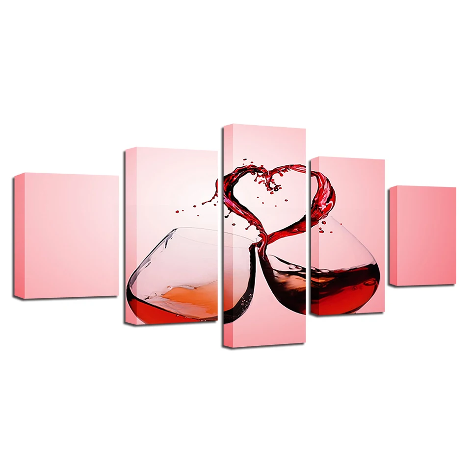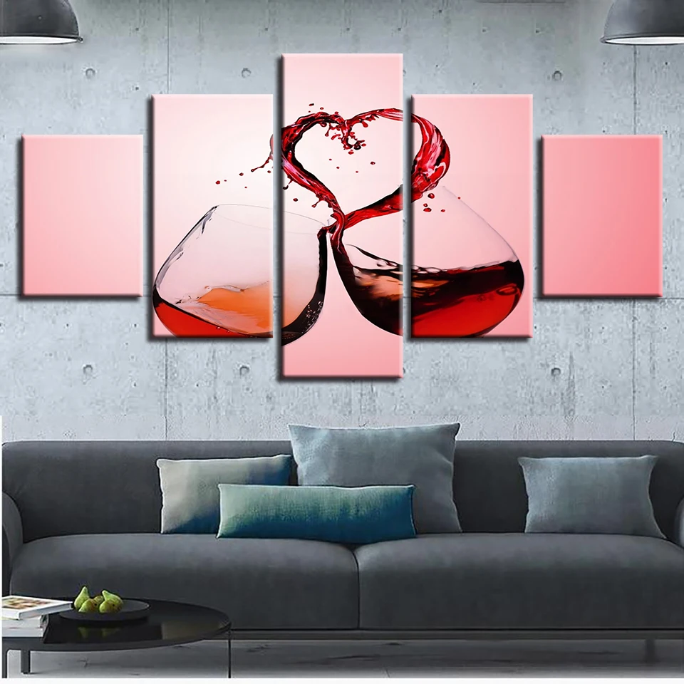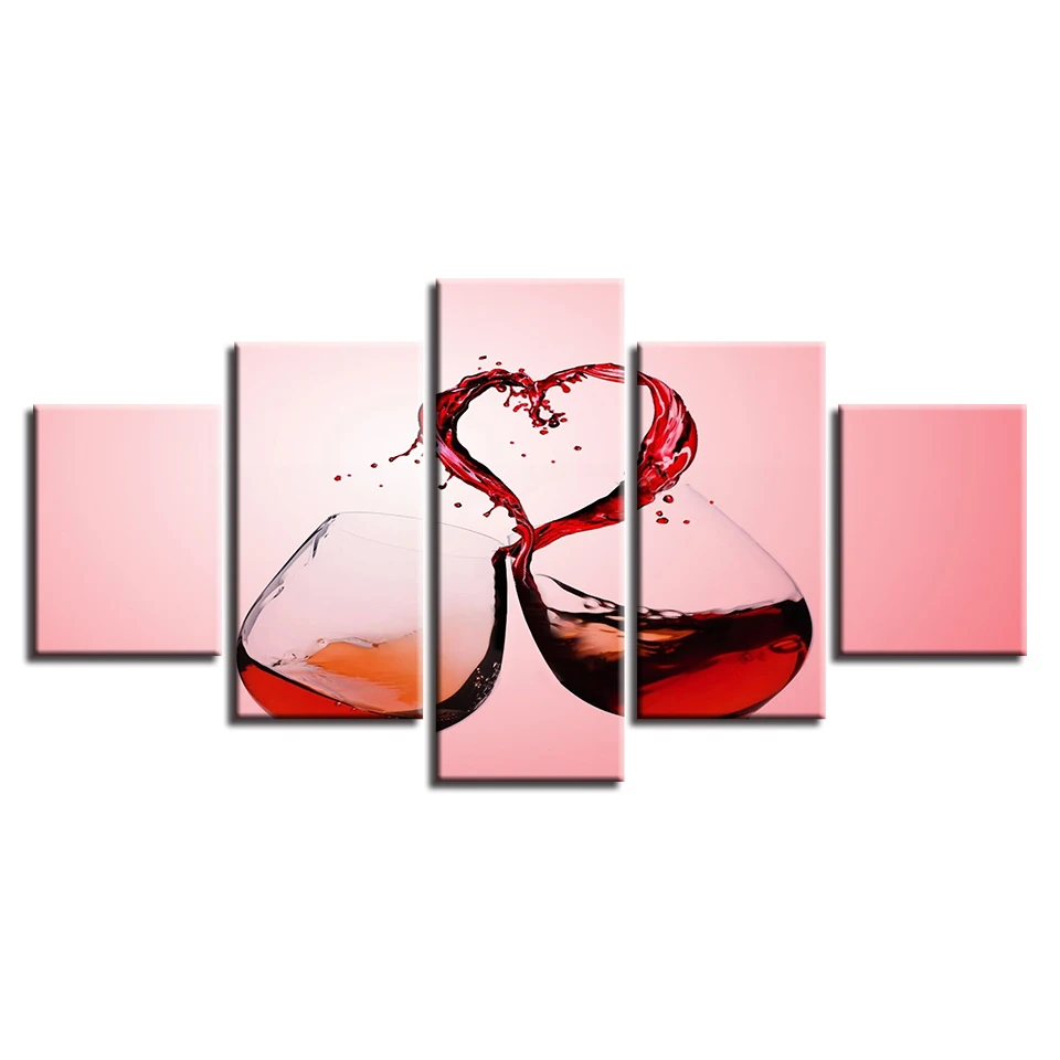 Modname = ckeditorДекоративные 5 панелей, Современный домашний декор, модульные картины, бокалы с красным вином и сердцем, кухонный декор, настенные постеры для гостиной, картины