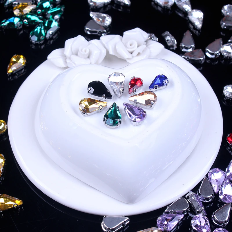 Серебряный коготь, пришитый каплевидный кристалл, камень, 3 размера, 21 цвет, стеклянные стразы в форме капли, страз, алмазная металлическая основа, пряжка