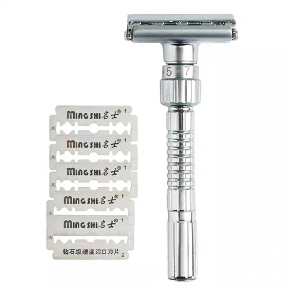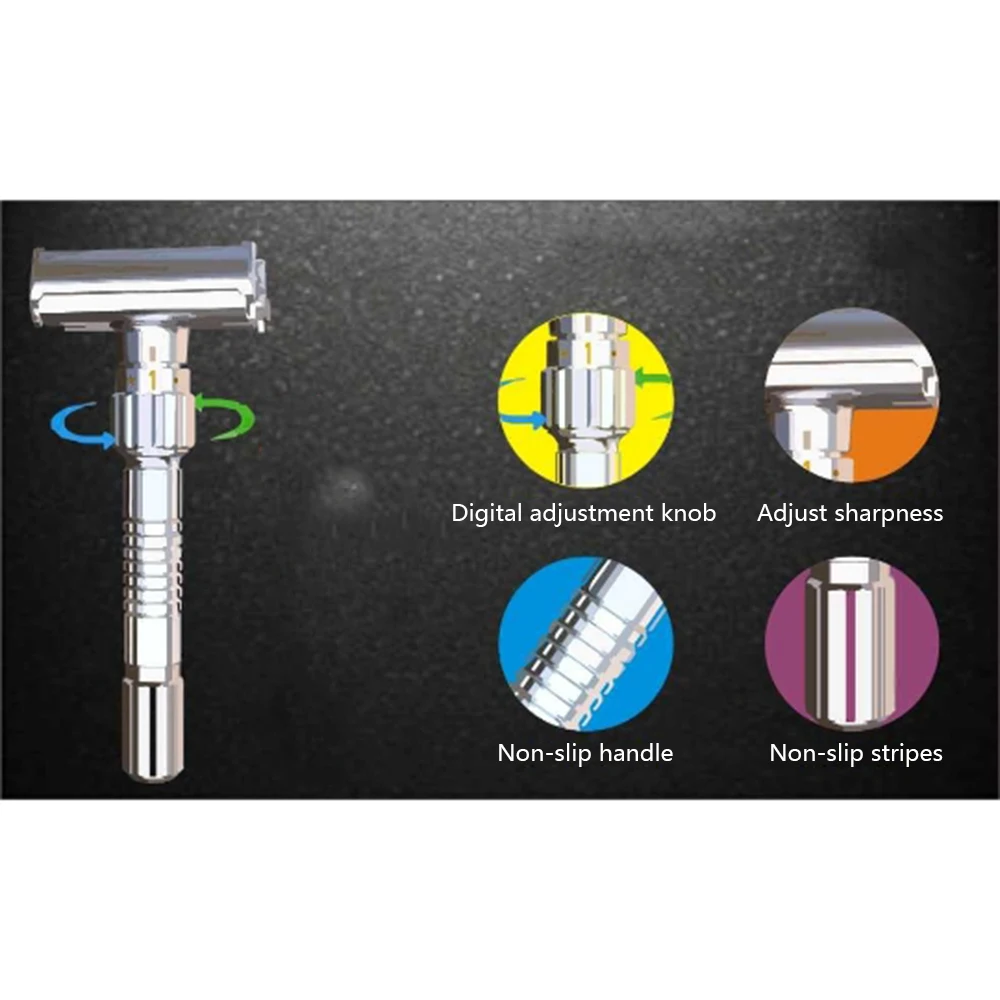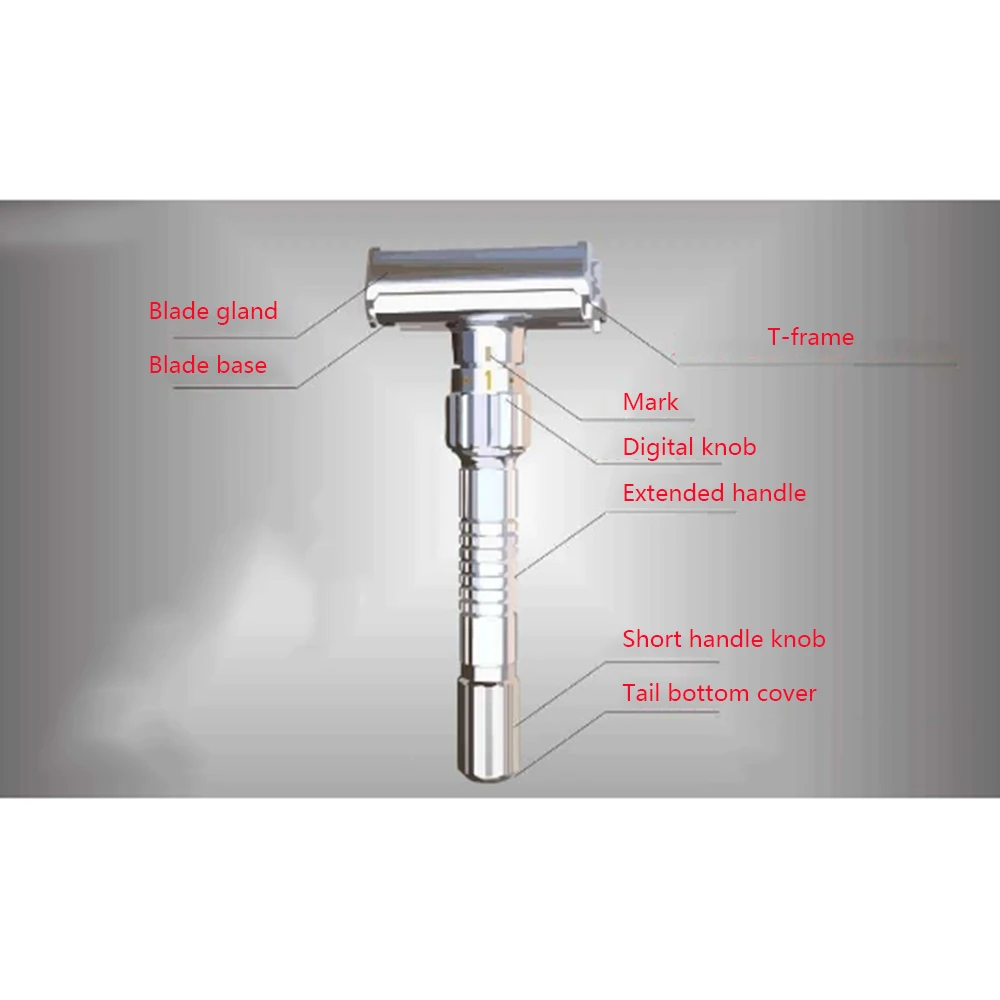 Лезвие поворачивается снизу, нет необходимости в громоздкой разборке, удобная, уникальная Вращающаяся ручка, нет необходимости загружать и разгружать держатель инструмента, Выберите угол бритья, металлический материал, многослойный хром.