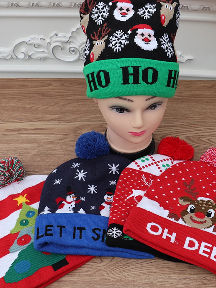 -Рождественские шапки, вязаные шапки подходят для осеннего и зимнего сезонов для утепления. Он сочетается с креативным светодиодный освещением и красочными огнями для увеличения праздничной атмосферы;