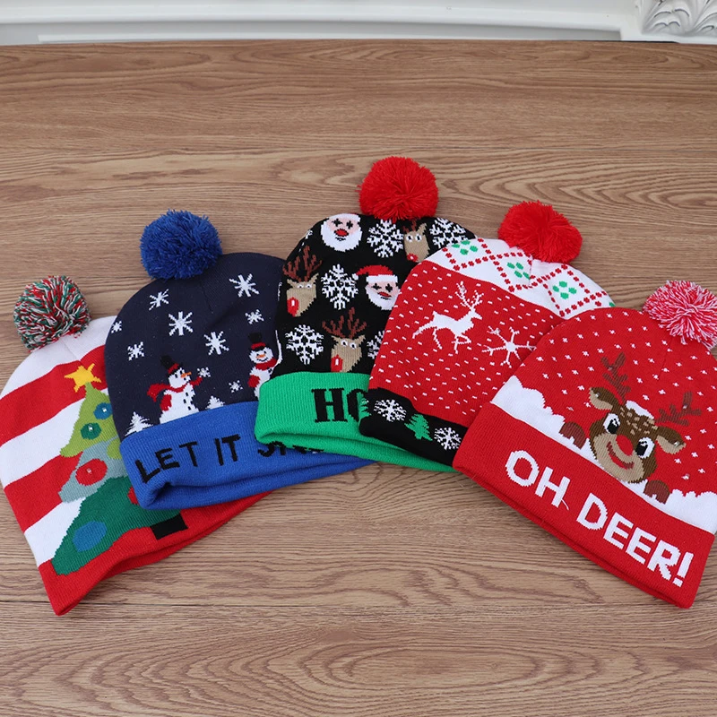 2020 популярный дизайн, светодиодный Рождественский головной убор, Рождественский свитер, шапка Санты, светильник, вязаная шапка для детей и взрослых, для рождественской вечеринки