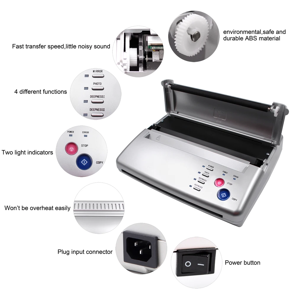 Количество: 1 переносная машина Режим сканирования: СНГ Эффективная ширина сканирования: 210 мм По горизонтали: 8 точек/мм Вертикальная: (стандартная) 3,85 линия/мм Просмотреть все документы этого типа: тонкий Размер документа: A5-A4 Толщина документов: 0,06 мм-0,15 мм Режим записи: т/ч Эффективная ширина печати: 210 мм Вес: 1,67 кг Цвет: черный Размеры: 29*23*7 см Поставляется с простой отдельной коробкой для переноски: 40*29*15 см 1. Собственный завод, тату термальный копировальный аппарат/Трафарет машина/тату переводная машина 2. Высокое количество тату машина для тату художников легко работать. 3. Регулировка не требуется, экономия времени 4. Хорошее качество и разумная цена 5. Это новейший отличный тату-копир, USB подключение к компьютеру для печати дизайна ПК. А также работает для нормального бумажного дизайна. 6. Новая легкая и прочная конструкция 7. Работает как факс 8. Сверхмощный Быстрый копировальный аппарат 9. Теплопередача/Тип факса 10. Регулируемая фотография или точное разрешение 11. Регулируемая глубина копирования-Простота в использовании Удобный Введение: Скопируйте в зеркального состояния 1, откройте обложку для копировальной бумаги. 2, извлеките масленку; В соответствии с картинкой, положите бумагу и держите трафаретную бумагу вверх, потяните бумагу к TPH стороне. Кроме того, вы можете оторвать желтую бумагу, а затем положить бумагу. 3. Закройте бумажную коробку для копирования. 4, скопированный документ должен быть лицом вниз и положить его в фидер. Когда документ будет обработан, нажмите клавишу «Копировать». Скопируйте в нормальном состоянии Перед копированием нажмите клавишу «Зеркало», чтобы сохранить тушение света зеркала. 1. Откройте бумажную коробку для копирования. 2. Извлеките клееную бумагу; В соответствии с рисунком, положите бумагу и держите трафаретную бумагу вниз, потяните бумагу к TPH стороне. Кроме того, вы можете оторвать желтую бумагу, а затем положить бумагу. 3. Скопированный документ должен быть лицом вниз и положить его в фидер. Когда документ будет обработан, нажмите клавишу «Копировать». Обратите внимание: 1. Прежде чем использовать функцию зеркального копирования, вы должны подождать несколько секунд для нагрева TPH; Когда страница напечатана, белая бумага копировальной бумаги должна быть приклеена к TPH. 2. Если вы хотите остановить копирование, пожалуйста, нажмите клавишу «stop». 3. При звуке предупреждающего сигнала горит ошибка и немедленно остановится. 4. Руководство включено.