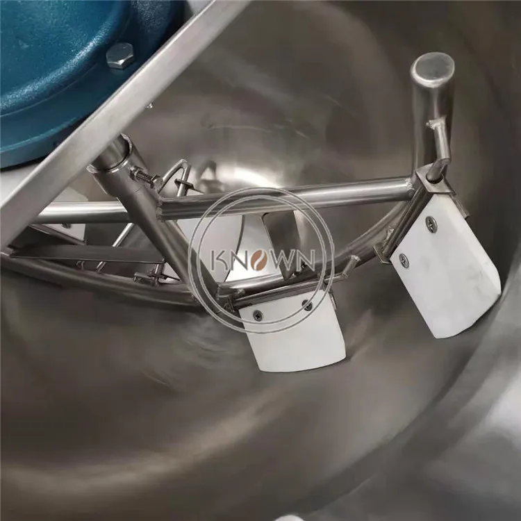 stirring speed:23 rev / minstirring formscraping bottom stirringWeight240kgDetailed of the 100L electric heating type jacketed kettle Sandwich cooking pot wog machine