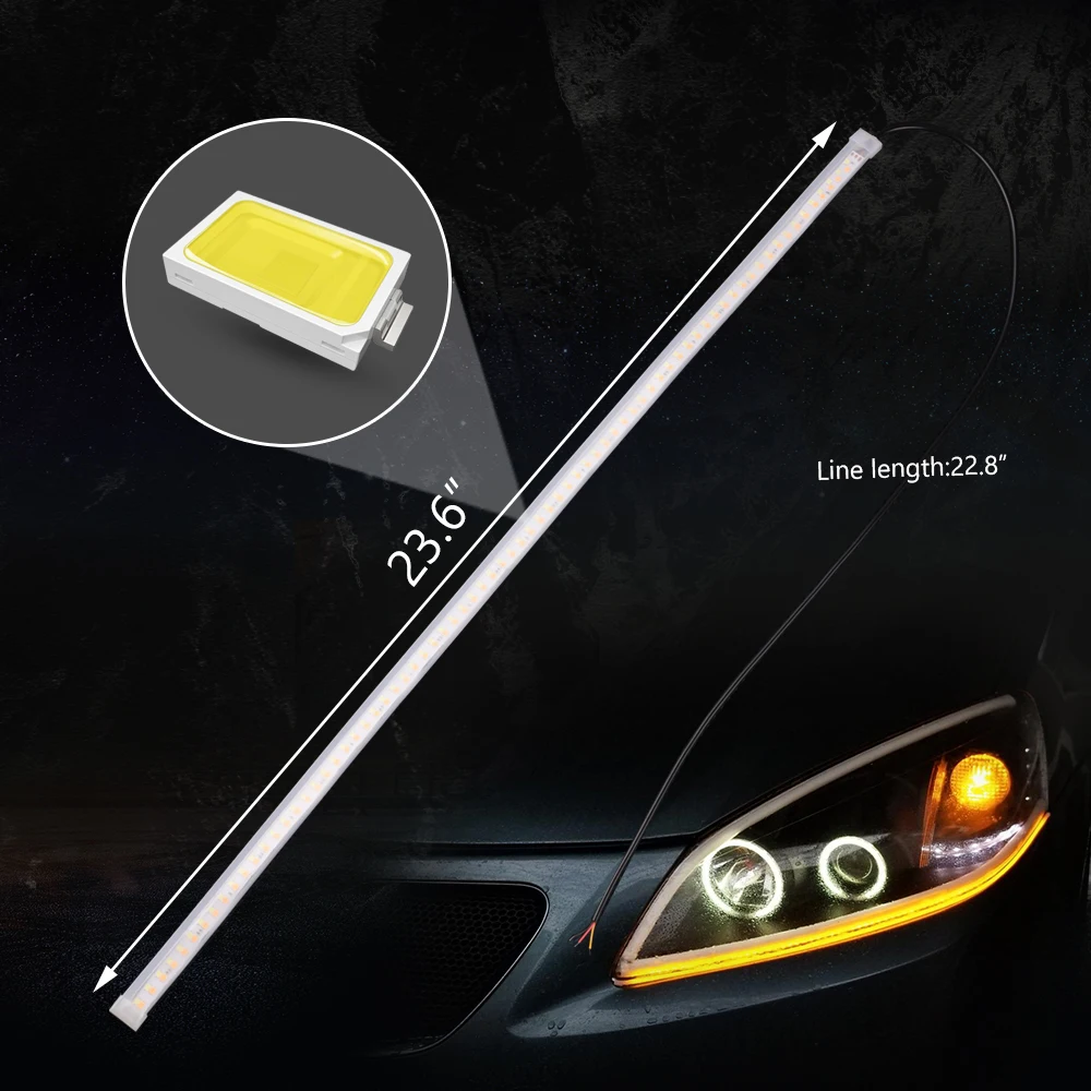 MICTUNING 2 шт 24 дюйма светодиодный светильник пропилен-каучука прокладки с двойной Цвет белый и желтый головной светильник полоса трубка светильник для DRL указателем поворота светильник