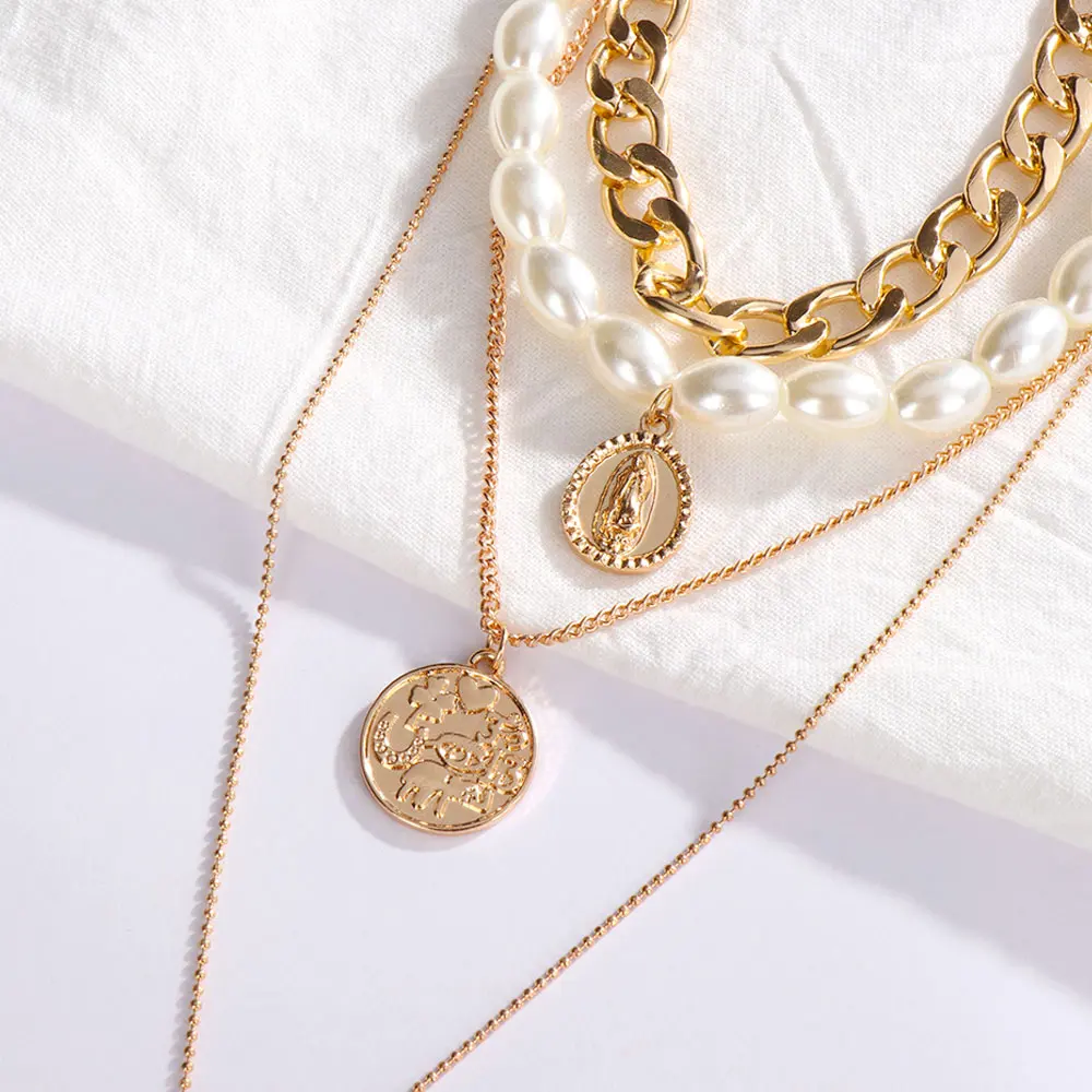 Форма: квадратная Тип цепи: звеньевая цепь Размер: как показано на фотографии Тип: ожерелья с подвесками Материал: искусственный жемчуг, сплав Стиль: в стиле «панк» Пол: Для женщин Цвет: золотистый Повод: повседневные, вечерние, подарочные, свадебные Кулон: резная монета, Дева Мэри, кристальная подвеска Посылка включает в себя: 1 многослойное ожерелье с подвеской
