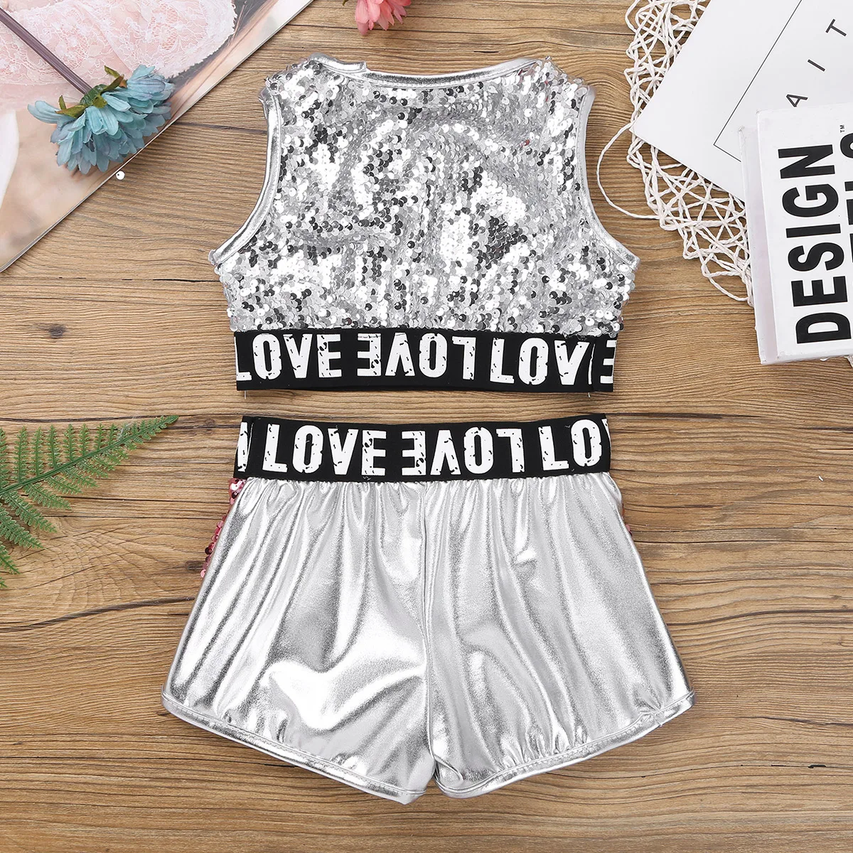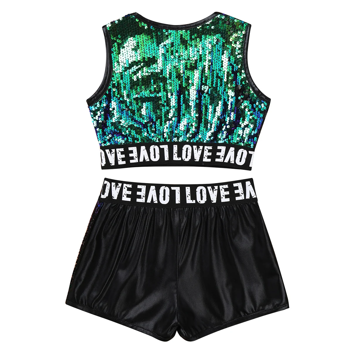 Шорты с буквенным принтом и эластичным поясом. С подкладкой для комфортного ношения. Шикарный и крутой комплект одежды для танцев для ваших девочек.