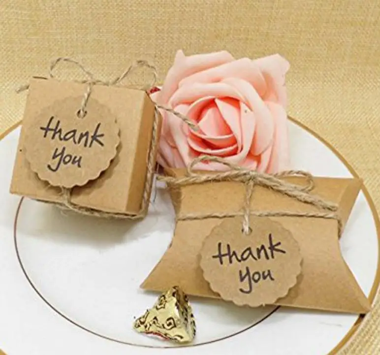 Крафт-бумага DIY Свадебная коробка конфет с благодарностью карты и веревки свадебный подарок детский душ подарок