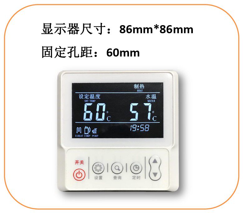 Контроллер является специальным контроллером для теплового насоса водонагревателя, подходит для текущего основного ремонта воздухозаменителя, может использоваться фторированный цикл и циркуляция воды, процесс выборки и патентования, качество стабильное и надежное, цена дешевая, может установить рабочее состояние четырехходового клапана, Совместим с новым винтажным тепловым насосом. ★Основные функции 1, диапазон контроля температуры: 20-80 градусов (по умолчанию 60 градусов) 2, с функцией электрического отопления, не бойтесь холодной зимы 3. Может установить рабочее состояние четырехходового клапана, совместимый с новым старомодным тепловым насосом 4. Вы можете выбрать для установки температуры выхлопных газов, температуры обратной воды, температуры солнечной батареи (нужно купить соответствующий датчик) 5, с часами, вы можете установить 3 времени цикла 6, большой экран высокой четкости с подсветкой, Статус функции каждой функции с первого взгляда 7. Функция отключения памяти, может запоминать состояние включения/выключения и рабочие параметры теплового насоса 8, все функции запроса температуры датчика температуры в реальном времени 9. Функция отображения неисправностей датчика температуры и температуры 10. Встроенный источник питания удобен для установки мастером 11, выпускной компрессор, Высокое/низкое давление воздуха, защита переключателя потока воды 12, зимний один/два антифриз защиты